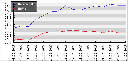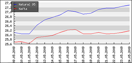 | Priemerné ceny pohonných hmôt v Českej republike k 25.05.2009 |