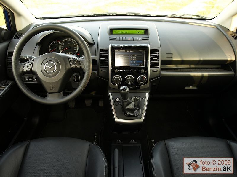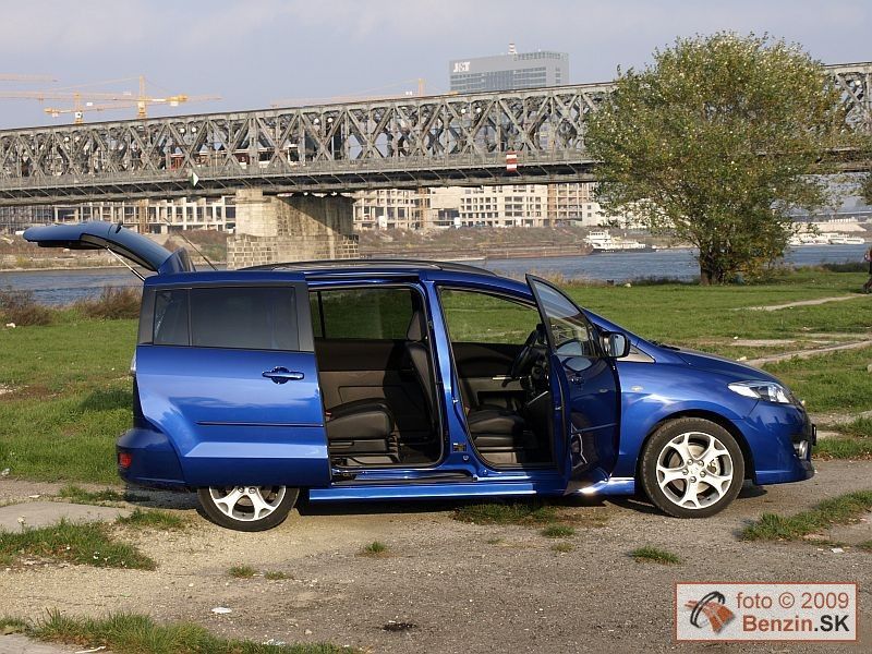 Po podstatne väčšom vane Mazda MPV je Mazda 5 druhým automobilom značky v tomto stále sa dynamicky vyvíjajúcom segmente značky. Na prvý pohľad je cítiť štýl, ktorým Mazda spustila pred časom štýl Zoom-Zoom, ktorý dodnes sviežim štýlom sprevádza všetky modely Mazdy. Automobil, ktorý debutoval v roku 2004 vychádzal z Mazda3 a nahradil model Premacy. Päťdverová karoséria má stále oproti konkurencii stále praktické posuvné bočné dvere po omladzovacej kúre pôsobí ešte dynamickejšie. Postarala sa o to nová maska , ale aj koncové LED svetlá. K lepšiemu sa posunul aj interiér je tvorený zaujímavo a prakticky. Na predných sedadlách poskytuje všetko, čo sa od automobilu rodinného typu vyžaduje. Dá sa povedať, že to najlepšie z predošlej Mazdy 5 nielen zostalo, ale sa aj posunulo o kvalitatívny kus ďalej. Týka sa to výbavy, ale aj motorizácií. Multifunkčný volant má nastavovanie v dvoch rovinách. Automatická klimatizácia je samozrejmosťou, ako aj elektrické ovládanie okien a zrkadiel a tempomat, ale aj bez kľúčové ovládanie, keď vás bez problémov automobil identifikuje s elektronickou kartou vo vrecku. Pri cúvaní je nápomocná kamera a pre celú prevádzku rozmerný stredový displej.