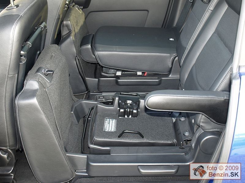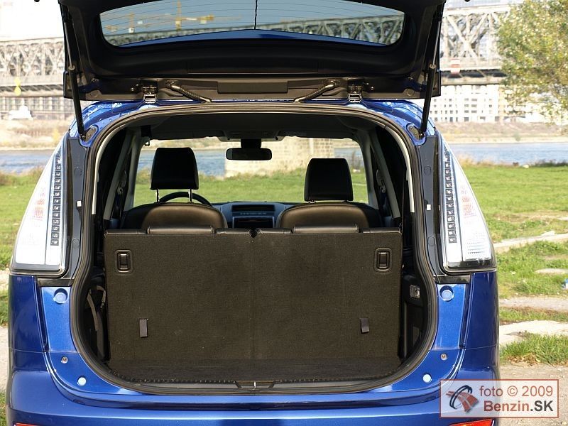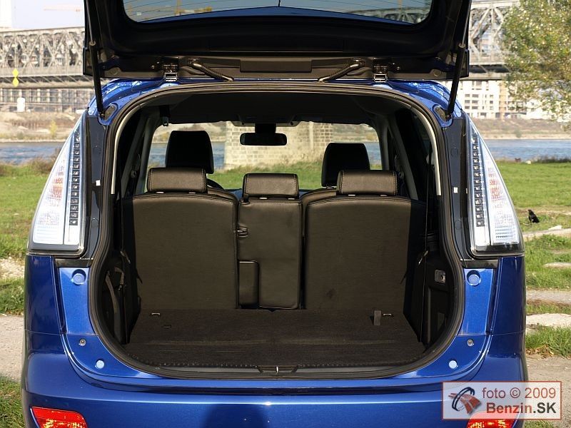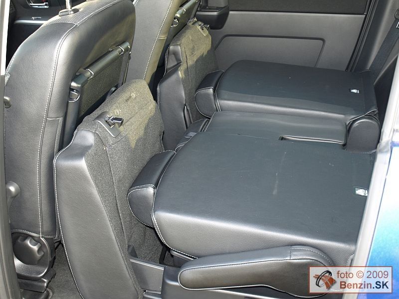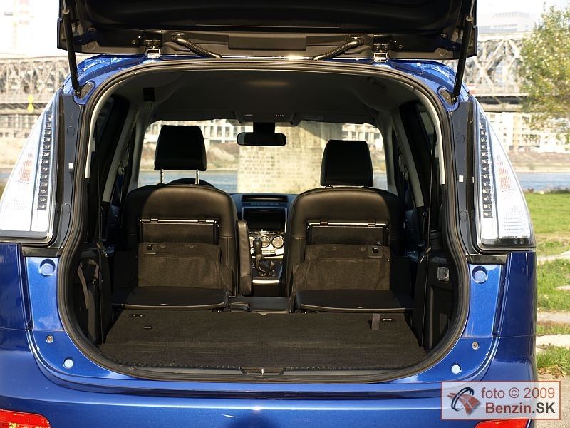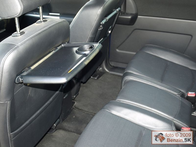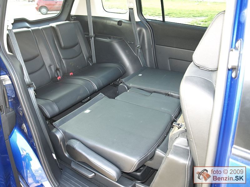 Čalúnenie je kožené, priestor na predných sedadlách je dostatočne komfortný, sedadlá majú aj vyhrievanie. Druhý rad sedadiel je tvorený dvomi plnohodnotnými sedadlami. Pod ich výklopnými sedákmi sa nachádza odkladací priestor. Stredové sedadlo je zaujímavo sklápateľné. Pri dlhšej ceste na ňom však už pociťujete jeho neplnohodnotný charakter. Možno preto označuje výrobca automobil 6+1. K poslednému radu dvoch sedadiel sa dá dostať obmedzeným priechodom. Po zasadnutí je potom váš priestor limitovaný polohou sedadiel pred vami. Po optimalizácii pomerov vzájomne medzi posádkou sa dá účelne vyžiť všetkých sedem sedadiel. Ešte lepšie sa dá využiť priestor nezávislým sklápaním sedadiel a zasúvaním do podlahy jedným ťahom pri preprave len piatich pasažierov a napríklad športového náradia, či potrieb na chalupu, alebo dovolenku.