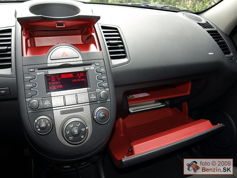 Kubická rozmernosť karosérie sa presťahovala aj dovnútra. Interiér je nadpriemerne dimenzovaný s výrazným stredom palubovej dosky. Na jej vrchu sa nachádza kruhový odkladací priestor, v ktorom sa však odložené veci zrkadlia v prednom skle. To dračie v tmavosivom interiéri sa objaví po otvorení skriniek, ktoré majú jasne červené vnútro, v súlade s koncipovaným červeným úsmevom masky v prednej časti vozidla. Sedadlá sú pohodlné, multifunkčný volant len s výškovým nastavovaním padne dobre do ruky a kruhové prístroje sú dobre čitateľné. Priestor a jeho nadpriemerná dimenzia je ťahákom takto koncipovanej karosérie. Navyše podľa posledných testov EuroNCAP spĺňa päť hviezdičkovú úroveň bezpečnosti a to aj podľa novej, prísnejšej metodiky. Doplňme ešte prvky výbavy, ako vyhrievanie predných sedadiel, autorádio s možnosťou napojenia iPod, či iného externého zdroja zvuku, zadné parkovacie senzory, elektrické ovládanie okien a zrkadiel a samozrejme aj klimatizáciu.