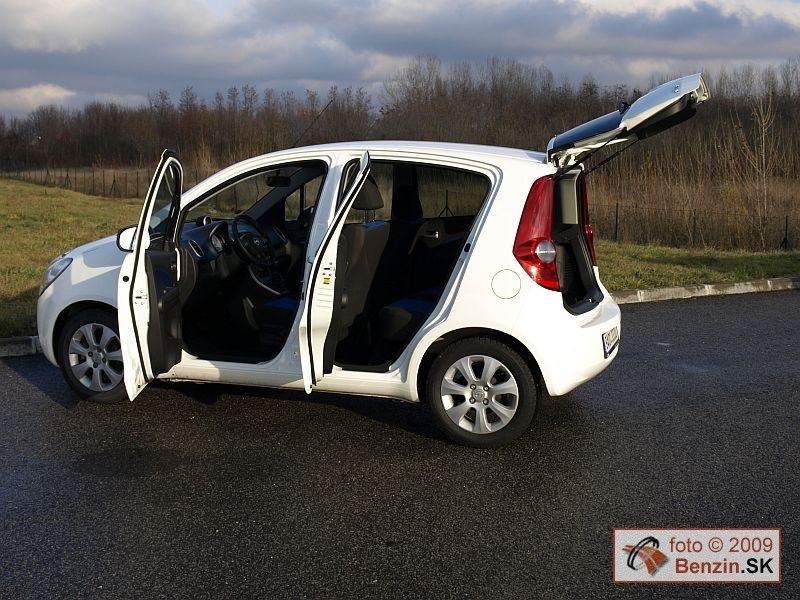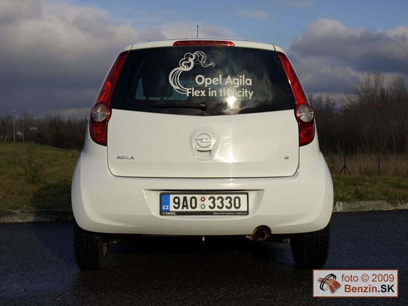 Keďže ide o dvojčatá, môžeme skonštatovať len to, čo sme hovorili pri teste Suzuki Splash, nový Opel Agila je skutočne vonkajšími rozmermi malý mestský automobil, no pohľad naň sa zmení, keď si doň sadnete. Dostatočný priestor, ktorý vás obklopuje, akoby nekorešpondoval s údajmi o rozmeroch karosérie. Z rozmerov mini auta sa trochu vymaňuje údajom o výške karosérie, ktorá vytvára dojem priestoru a zároveň posúva karosériu aj do kategórie mini vanov. Vyššia karoséria vytvára priestor pre posádku, s ktorým jeho majiteľ môže byť spokojný. Oproti hranatej karosérii predchodcu, prináša nová Agila oblé, príjemné tvary, ale aj dostatočnú dávku dynamiky. Pätoro dverí zasa umožňuje bezproblémový prístup na sedadlá, aj do kufra.