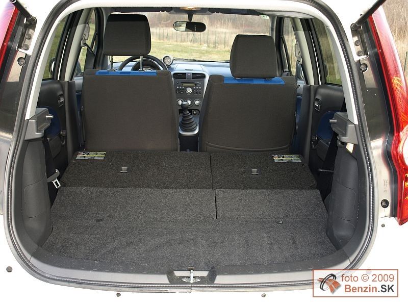 To všetko sme už poznali z jeho dvojčaťa. Príjemne a atraktívne modrou látkou čalúnené sedadlá mali vyššie sedenie. Nechýbala klimatizácia a palubný počítač. V základnom postavení mal kufor trochu menší rozmer, poskytoval však dve úrovne podlahy. Po sklopení zadných sedadiel, čo sa robí jednoducho jedným ťahom sa vytvorila rovná plocha, zvýšená však o nakladaciu hranu.