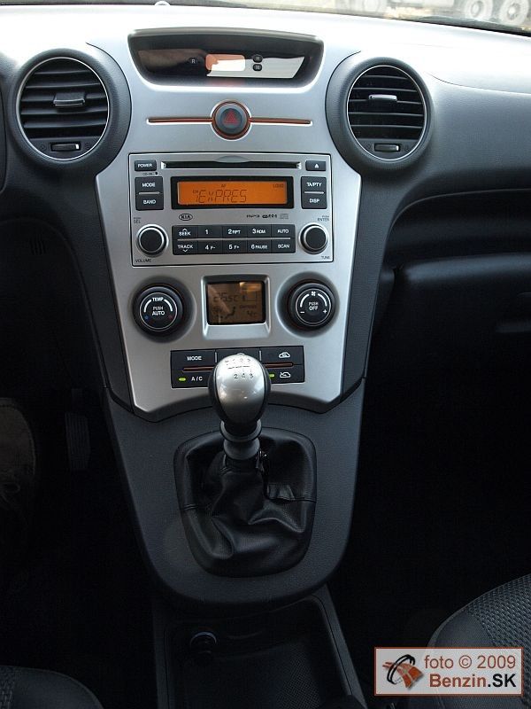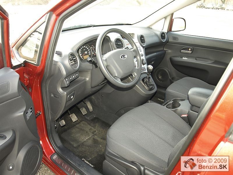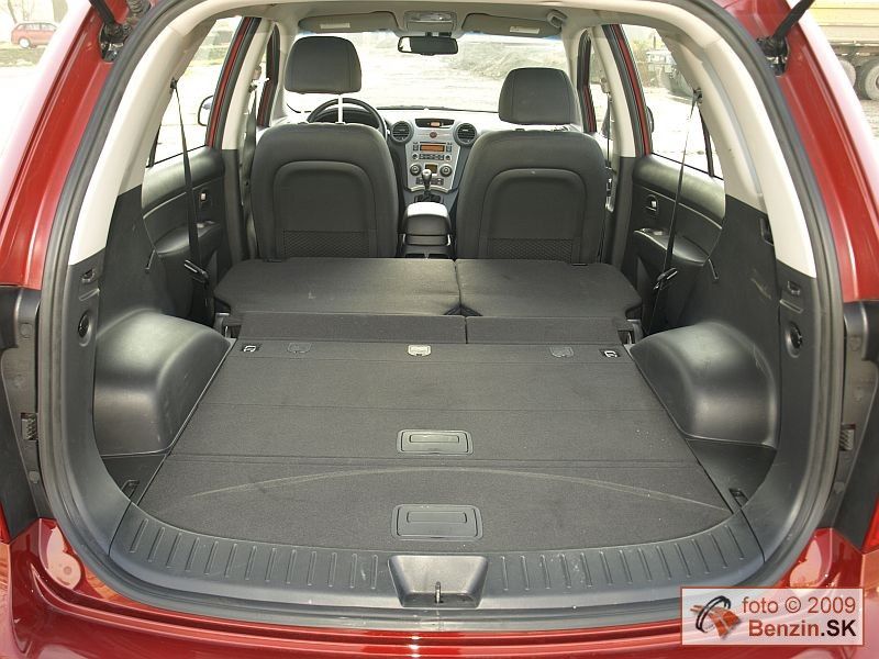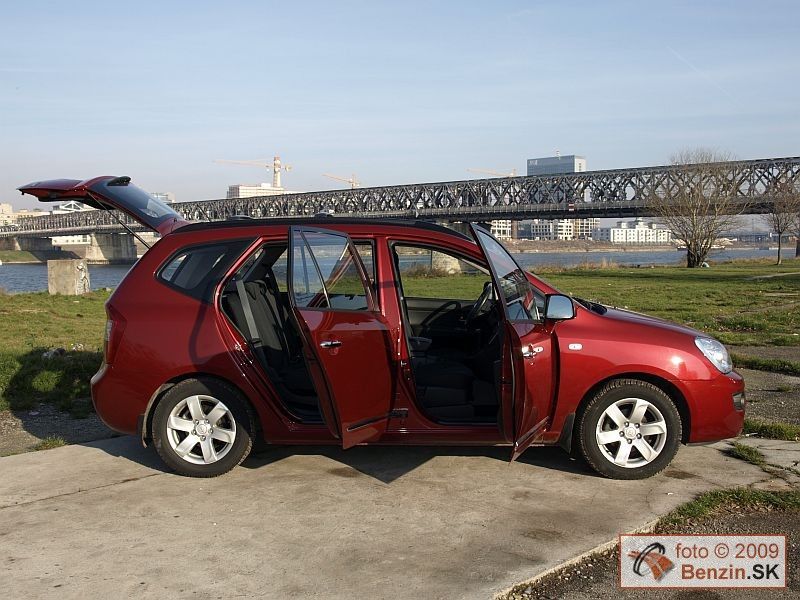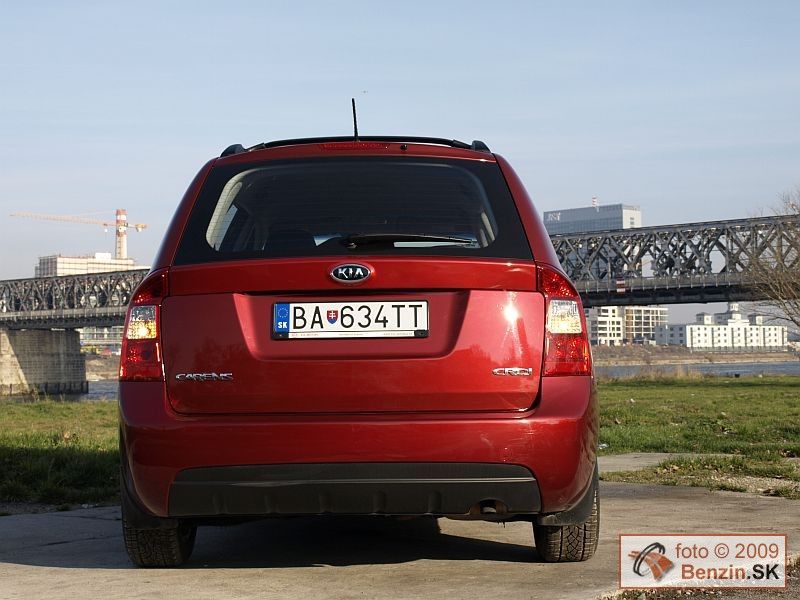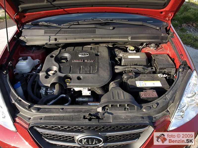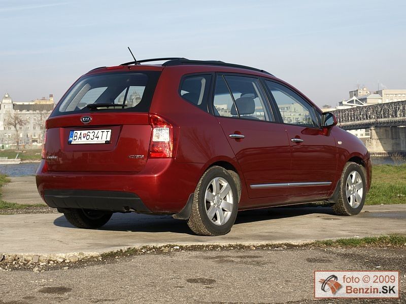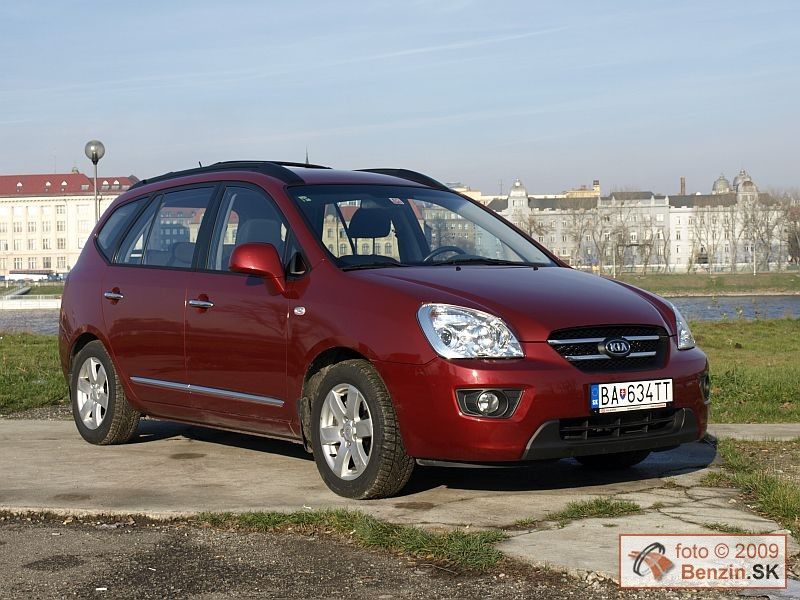 Technológiu vysokotlakového vstrekovania so spoločným zberačom typu Common Rail si automobilka Kia rýchlo navykla a dvoj liter stojí výkonovo aj prevádzkovými vlastnosťami na vyššej úrovni svojej objemovej triedy. Pomáha mu k tomu aj technológia prepĺňania VGT s variabilnou geometriou lopatiek turbodúchadla. Motor má príjemný chod, s dynamickým ťahom už od nízkych otáčok a šesťstupňová mechanická prevodovka má dobré nadávkované rozdelenie prevodových stupňov. Pri diaľničnom rýchlostnom limite pracuje motor pri 2500 ot/min, teda v optimálnom režime. Ťažšia a vyššia karoséria si však vyberá svoju daň. Výrobcom udávanú spotrebu v zmiešanej prevádzke sme prekročili o liter, teda smerom k prevádzke v meste. Vzhľadom na proporcie karosérie je však aj tento údaj veľmi dobrý. Prijateľná cenová relácia, príjemný komfort jazdy a nadpriemerné priestorové možnosti sú devízami tohto automobilu v triede automobilov typu van. K praktickým riešeniam využitia tohto typu vozidla prikladáme ľahké posúvanie priečok strešného nosiča. Vonkajšie rozmery tohto automobilu sú však ešte stále v norme dobrého parkovania a nájdenia si parkovacieho miesta aj v preplnených mestských aglomeráciách.