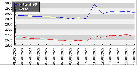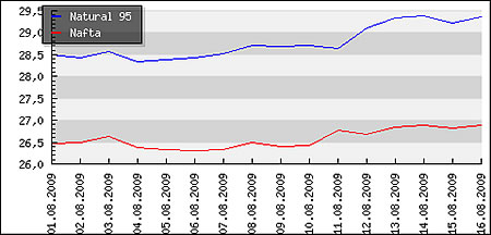 Priemerné ceny pohonných hmôt v Českej republike k 17.08.2009 dátum pridania