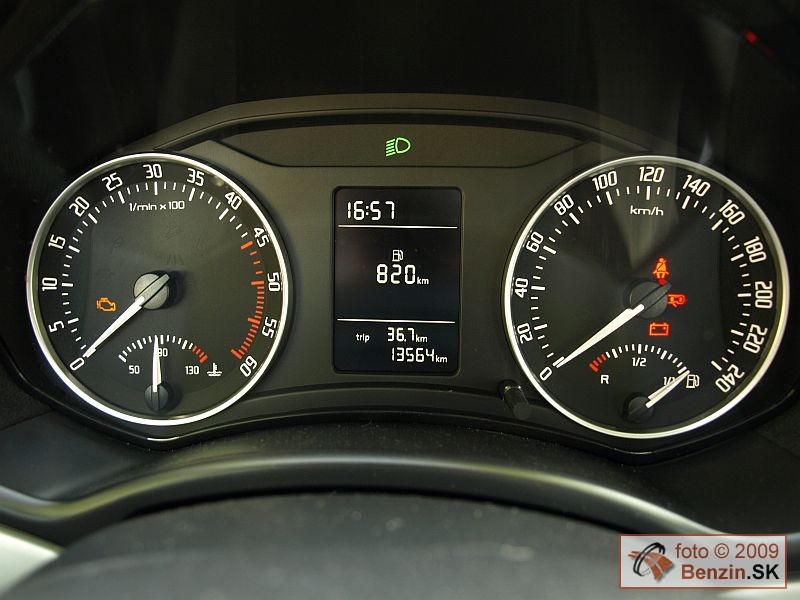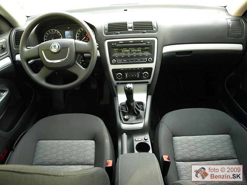 Zo štyroch ponúkaných výbav je Ambiente druhá v poradí. Ponúka dobrú úroveň komfortu. Prístrojový panel má už tradične jednoduchšie tvary a je osviežený kovovými lištami. Štvorlúčový volant sa dá nastavovať v dvoch rovinách a v jeho strede je šikovne štylizovaný úsmev prednej masky automobilu. Predné sedadlá sú dobre tvarované a aj vyhrievané. Nechýbajú okná a zrkadlá v elektrike, dvojzónová klimatizácia s ovládaním ventilácie aj pre pasažierov na zadných sedadlách, zadné parkovacie senzory a aktívne reflektory, ktoré dosvetľujú hmlovým svetlom do zákruty. Elektronický stabilizačný systém ESP je štandardom pre všetky modely Octavie. Jazdné vlastnosti sú podľa očakávanie veľmi dobré a podvozok je dobre čitateľný. Dobre známy turbodiesel 1,9 TDI má razantný nástup krútiaceho momentu a pri studenom štarte aj trochu vyššiu hlučnosť. To sa však zohriatím motora upraví na prijateľnú úroveň. Na piatom prevodovom stupni motor pracuje nad hranicou maximálneho krútiaceho momentu pri 2650 ot/min. Predpísanú hodnotu priemernej spotreby sme prekročili o pol litra nafty na 100 km, čo je pomerne dobrá zhoda a je potešujúce, že takto automobil prejde na jednu nádrž viac ako 1000 kilometrov. Dobrá, priestranná a úsporná, tak hodnotíme Novú Škodu Octavia 1,9 TDI.