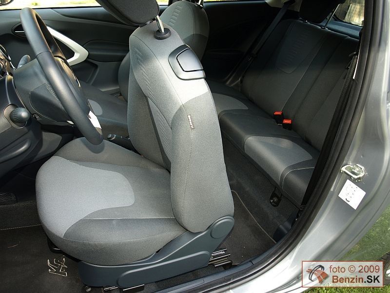 Vnútorný priestor je na túto triedu malých mestských automobilov bohato čalúnený. Pár centimetrov navyše je v interiéri cítiť. Avšak strasti trojdverovej karosérie sú rovnaké. Veľké dvere sú limitujúce pre stiesnené parkovanie v mestách a nástup na zadné sedadlá je tiež trochu zložitejší. Príjemne nás však prekvapil kufor, ktorý ponúka 225 litrov, čo je na túto triedu dosť, ak to napríklad porovnáme s Fiatom 500, ktorý pojme o 80 litrov batožiny menej.