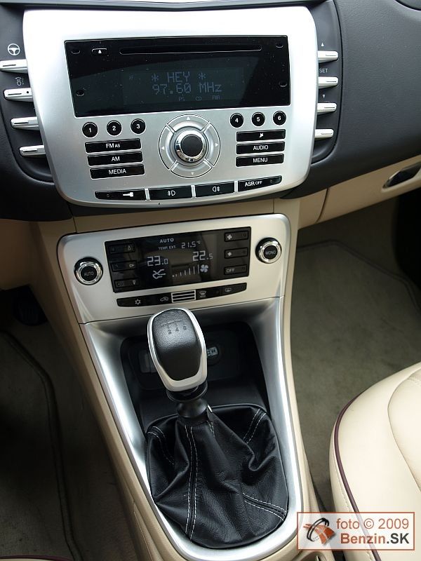 Kombinácia čiernej a krémovej farby doplnená detailmi z kovu ubezpečuje, že sa nachádzate obklopení len kvalitnými materiálmi. Navyše dizajnéri sa s interiérom pohrali prinajmenšom tak dôkladne, ako s karosériou ktorá spĺňa nielen mimoriadne estetické požiadavky, ale aj bezpečnostné, bola ocenená piatimi hviezdičkami podľa metodológie EuroNCAP. V dvoch osiach nastaviteľný multifunkčný volant berieme pri najvyššom stupni výbavy Platino, ako samozrejmosť, podobne aj tempomat, palubný počítač a elektrické ovládanie okien a zrkadiel a automatickú klimatizáciu. Audio sústava je podporovaná systémom Blue&Me a dokáže spracovať aj externé zdroje signálu, či už z mobilu, alebo iPod, či MP3.