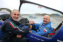 Dve krajiny, dvaja národní hrdinovia. Obom je tu na zemi akosi tesno. A obaja majú zvláštnu slabosť pre extrémne stroje. Ich historické, priateľské stretnutie sa preto inak ako „Sky heroes meeting“ nedá nazvať. A zatiaľ čo jeden z nich zamieril na letisko pri Budapešti v kokpite nového modelu Jaguar XF 3.0 Diesel S, druhý v hangári pripravoval na let svoj obľúbený stroj MSX-R. Hostiteľ Peter Besenyei je jedným z najlepších akrobatických pilotov sveta, lietajúci v najprestížnejšej sérii RedBull Air Race, ktorú vyhral hneď pri svojom debute v roku 2003 a odvtedy neskončil v koncoročnom rankingu horšie ako na 8. mieste. A svoje miesto na „nebi“ má už aj prvý slovenský kozmonaut Ivan Bella, člen klubu XF People a tohto času plukovník generálneho štábu ozbrojených síl SR. Muž, ktorý zvládol vari najdivokejšiu stíhačku MIG-21 a absolvoval najtvrdší výcvik na svete, aby sa na planétu Zem pozrel z vesmíru. Program pripravený do najmenších detailov však včera prekazilo nevyspytateľné počasie. Príliš silný vietor, príliš nízka oblačnosť a až priveľa dažďovej vody na vzletovej dráhe. Pre „hviezdnych hrdinov“ tak paradoxne práve obloha zostala zatvorená. Dvojmiestny inštruktážny špeciál, ktorý nezaostáva za ostrým súťažným lietadlom MXS-R preto včera, žiaľ, zostal na zemi a nepredviedol tak ani svoje hviezdne parametre - výkon 348 PS, top speed 426 km/h a maximálne preťaženie až 14G! Hodnota na hranici prežitia... Len pre ilustráciu, telo kozmonauta je pri štarte „rakety“ do vesmíru vystavené približne 9G. Náladu však obom chlapom vylepšil Jaguar XF, ktorý všetky meteorologické obmedzenia ignoroval a tak si ho obaja na letisku do sýta užili.