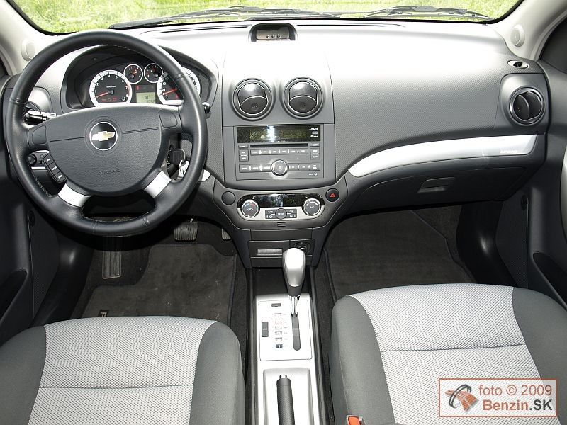 V krátkosti len zopakujme, to čo sme konštatovali pri predchádzajúcom teste modelu s mechanickou prevodovkou, že Chevrolet Aveo má na necelé štyri metre dlhú karosériu pomerne veľký rázvor, čo vytvára podmienky pre mestský automobil na pohodlné cestovanie nielen na predných, ale aj zadných sedadlách aj na dlhších trasách. Ako sme už konštatovali aj výbava LT bola totožná, teda na malý mestský automobil pomerne bohatá. Kožený volant s výškovým nastavovaním, so satelitom na ovládanie autorádia s MP3. Automatická klimatizácia, elektrické ovládanie okien a zrkadiel. Palubnému počítaču trochu vyčítame, že neukazuje aktuálnu, ani priemernú spotrebu, ale len počet kilometrov, ktoré chýbajú do vyjazdenia nádrže. Aj využitie batožinového priestoru je totožné, teda delené zadné operadlá sa dajú sklopiť a ešte väčší priestor sa vznikne keď sklopíte aj nedelenú zadnú lavicu.