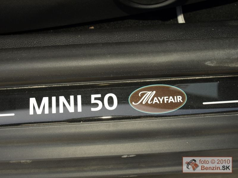 Bolo to v roku 1959, keď Sir Alec Isigonis predviedol svetu prvé kompaktné mestské vozidlo s predným náhonom a vpredu naprieč uloženým motorom. Dovtedy bol štandardom vpredu pozdĺžne uložený motor a pohon zadných kolies. Ten si dodnes kvôli vyššiemu cestovnému komfortu zachovali len limuzíny niektorých značiek. Ostatná automobilová populácia sa vybrala práve Mini Cooperom vytýčeným smerom. Pri pátraní v histórii sme si všimli, že raz už model Mini označenie Mayfair uniesol, bolo to v roku 1982. Poďme však k dnešku. Obnovená história značky Mini sa datuje od roku 2001 a podľa výrobcu, imidž auta musel jednoznačne zostať aj pri moderných technológiách a bezpečnostných predpisoch zachovaný. V tomto sa povestný anglický konzervativizmus prejavuje veľmi účelne. Mini musí ostať Mini, ako legenda. Posledný facelift pochádza z roku 2007. V tomto šate, avšak o príznačný bonusový bod bol aj nami testovaný Mini Cooper 50 Mayfair, čo je Mini so špeciálnou výbavou. Je to najmä exkluzívny lak karosérie, čokoládový odtieň s bielymi 17 palcovými hliníkovými diskami. Ďalším rozpoznávacím znakom série 50 Mayfair je plaketa s číslicou 50, ktorá je umiestnená na pochrómovanej mriežke chladiča a prídavné svetlomety. Názov edície je vyznačený aj na predných blatníkoch. Exkluzivitu Mini Cooper 50 Mayfair zvyšuje špeciálna výbava aj interiéru, kde je skombinovaný dekór Piano Black a svetlohnedé kožené obklady Toffy Brown a obohatením je aj audio systém Harman Cardon s digitálnym zosilňovačom, USB portom a prípojkou pre iPod.