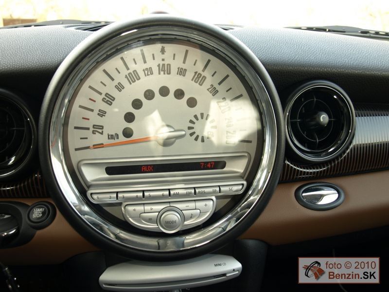 Vzhľad svojskej trojdverovej, štvormiestnej karosérie stále priťahuje pozornosť. Okná dvier sú bez kovových oblúkov, štýlový volant má nastavovanie v dvoch rovinách, ale najmä obrovský kruhový tachometer v strede prístrojovky, páčkové prepínače, to všetko vytvára neopakovateľnú retro-atmosféru aj v interiéri. Napríklad aj taký detail ako decentné presvietenie interiéru, ktoré si môžete navoliť od žltého až do modrého odtieňa. Pritom prístroje ostávajú svietiť oranžovo. Imidžové auto je určené najmä pre dvoch cestujúcich, aj keď sme si vyskúšali jazdu vo štvorici. Museli sme sa však riadne priestorovo uskromniť, deťom sa tam darilo lepšie. Kufor je v základnom stave skôr veľkosti nákupnej tašky, po sklopení delených zadných operadiel sa otvára väčší priestor. Hladký benzínový motor bol tichý a dobre korešpondoval so športovým podvozkom. Je dostatočne tvrdý na razantnú jazdu, ale už mäkší ako pri predchádzajúcej generácii. K dispozícii je aj vypínateľný režim Stop-Štart. Na šiestom rýchlostnom stupni pracuje motor na diaľnici na úrovni 3 200 ot/min, čo zabezpečuje spotrebu v tomto režime okolo 6 litrov benzínu na 100 km. Nás však lákali vyššie otáčky, kde má motor pekný zvuk a s tým spojená športová jazda. Podvozok s kolesami uloženými na koncoch karosérie, ako pri motokáre, jednoducho k tomu vyzýva. Celkovo sa spotreba počas testu vyšplhala na 6,3 litra, čo je stále na tisícšesťstovku pekná hodnota. Kto si kupuje Mini, vie prečo a nečaká, že všetko vo vnútri bude praktické. Mini Cooper je auto od začiatku stavané pre radosť z jazdy a tej poskytuje nadmieru. Výbava Mayfair tomu dodáva ďalší lesk...