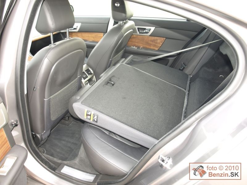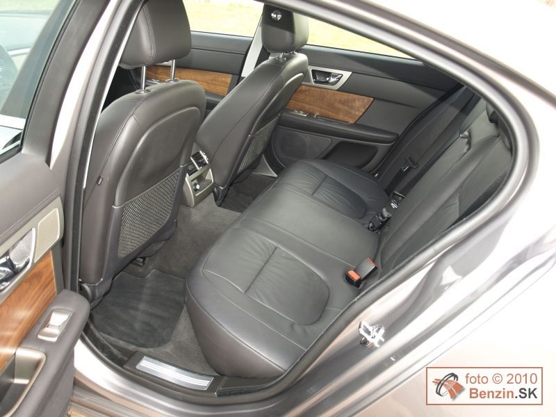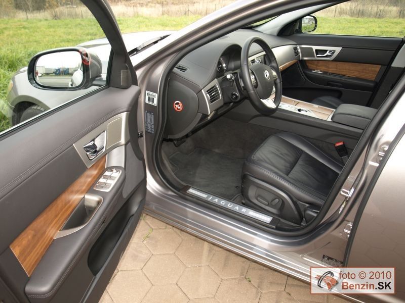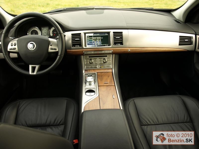 Pri prémiovej značke ako Jaguar sa ťažko hovorí o vybavení. Papierovo sú dve, Luxury a Premium Luxury. No už naša Luxury bol nadmieru bohatá. Počnúc koženým čalúnením a drevenými interiérovými lištami z amerického orecha, cez elektronické ovládanie od sedadiel, cez stierače, roletku v zadnom skle, až po parkovacie senzory a zadnú kameru, elektronickú parkovaciu brzdu. Jaguaru sa nevyhýbajú ani najnovšie bezpečnostné prvky, ako, bixenónové reflektory s prisvietením do zákrut, koncové LED svetlá, vyhrievané predné sklo či aktívny tempomat. Na rovnako vysokej úrovni je akustická súprava, ale aj dotykový displej s prehľadne podávanými informáciami. Ak má niekto ešte v sebe utkvelú predstavu anglického konzervativizmu, pri Jaguari XF sa to týka predovšetkým už len komfortu hodného Lorda. Ten na ovládanie vozidla môže mať kľúč pri sebe, pretože jeho šofér štartuje vozidlo tlačidlom. Ak to spraví, až potom sa zo stredového panelu honosne vysunie ovládač prevodovky. A prvýkrát sme sa stretli s tým, že motor sa dal vypnúť aj vtedy, keď ste nemali navolený parkovací režim „P“, motor sa vypol a ovládač sa ešte predtým ako sa elegantne zasunul do čalúnenia sám prestavil do parkovacieho režimu.