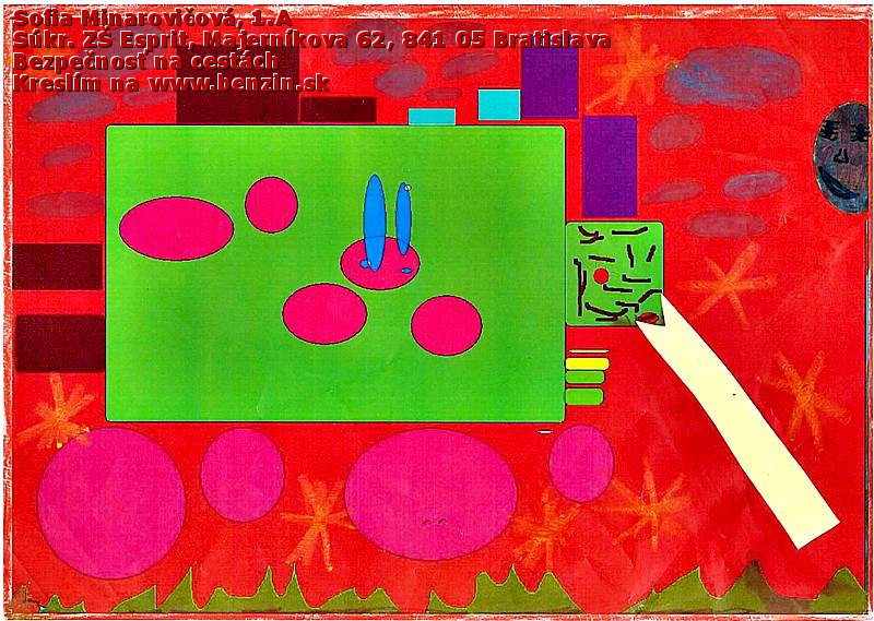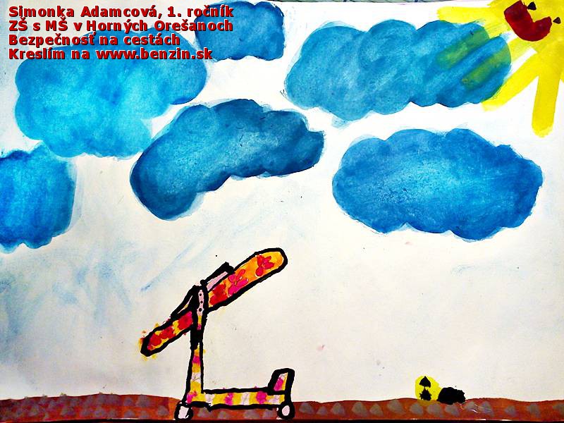Ja, ako učiteľka, som so žiakmi 1. ročníka maľovala na tému Bezpečnosť na cestách. Všetky výtvarné práce som odoslala mailom a rodičov som písomne informovala o prístupe na web a spôsobe hlasovania. Dvaja moji žiaci sa vtedy umiestnili (za podpory klikajúcich príbuzných) na prvých miestach a tešili sa z výhry, ktorá im bola doručená do školy. Do ďalších kôl sa mohli zapojiť v závislosti od vlastnej aktivity. Túto možnosť využil len Miško Hrebíček. Je to drobný chlapček tichej povahy, ktorý trávi voľný čas tvorivými aktivitami, ktoré pre neho a jeho brata vymýšľa mamina. Napriek systému hlasovania, ktorý v tejto súťaži funguje (rovnako pre každého), oceňujem najmä vytrvalosť a trpezlivosť, ale aj ctižiadostivosť všetkých hlasujúcich:-)