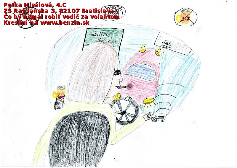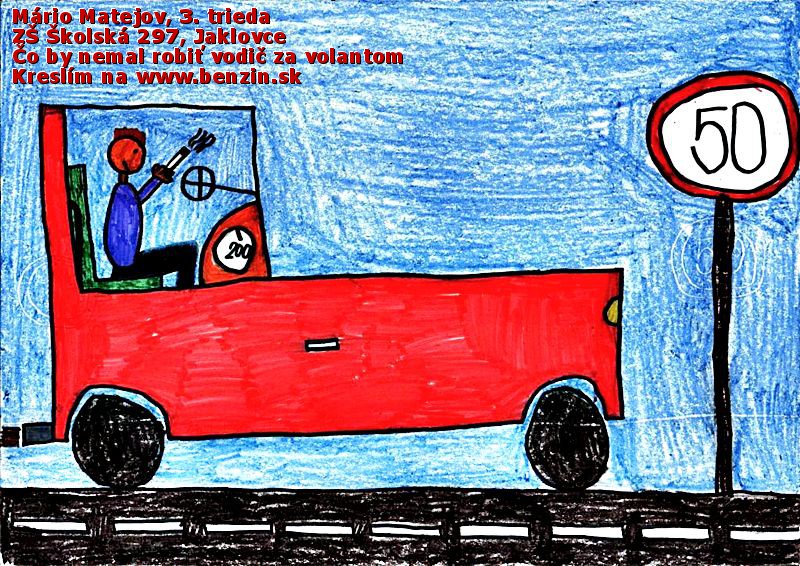 Vodič musí byť neustále v strehu, dávať pozor na autá, autobusy, chodcov, cyklistov, značky, semafory,... Má toho veru dosť. Niekedy sa však nesústredí tak, ako by mal, pretože mu pozornosť berie mobil, jedlo, pitie,...
