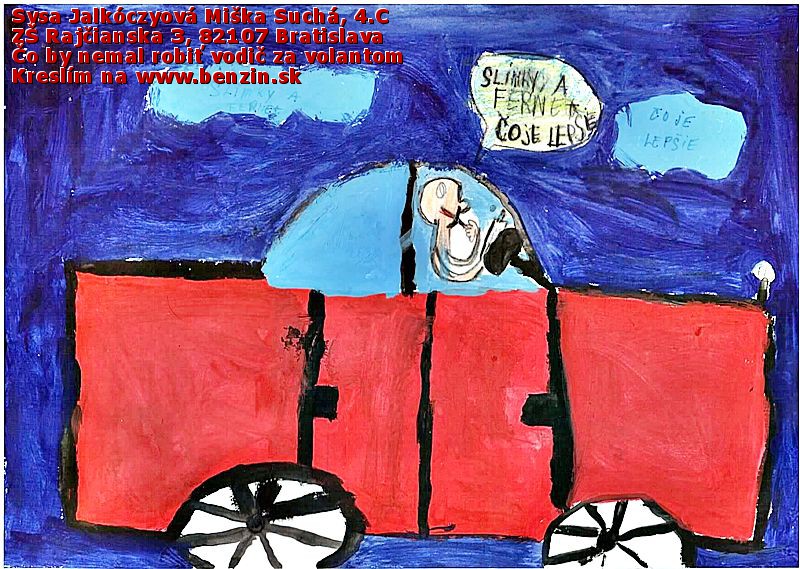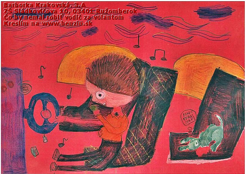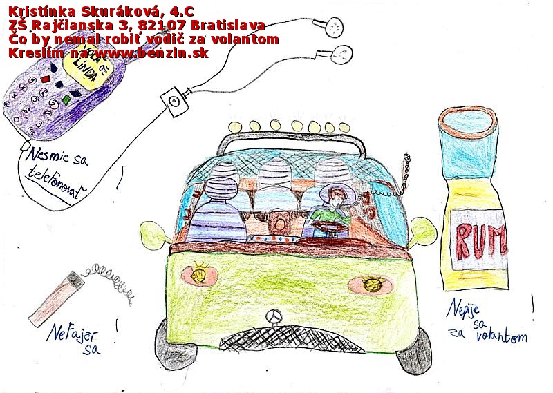 Uverejníme všetky kresby, ktoré nám pošlete najneskôr do 25.05.2011 buď emailom (kreslim@benzin.sk) alebo poštou na našu adresu: