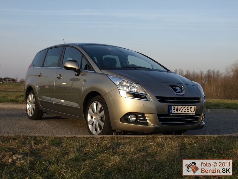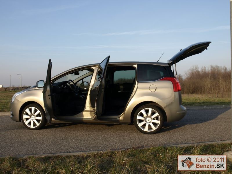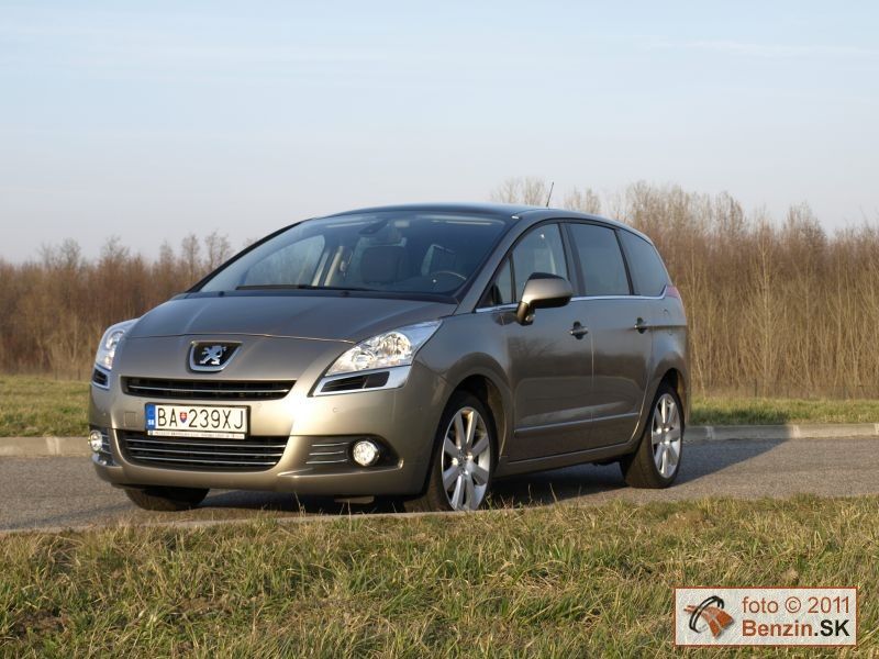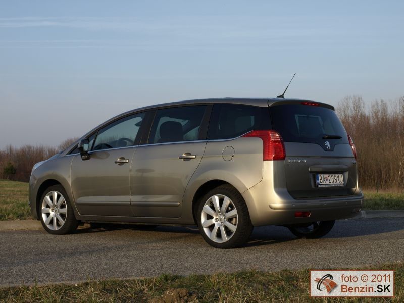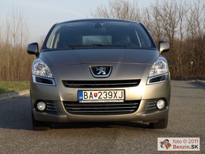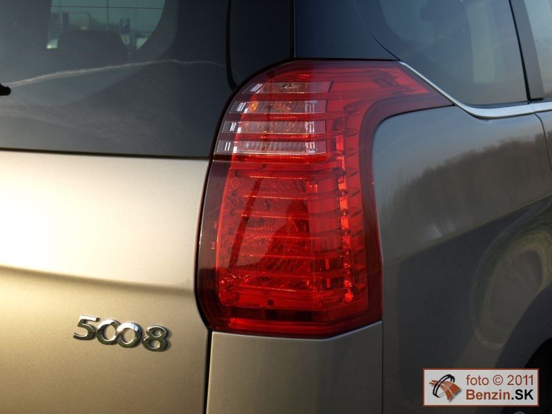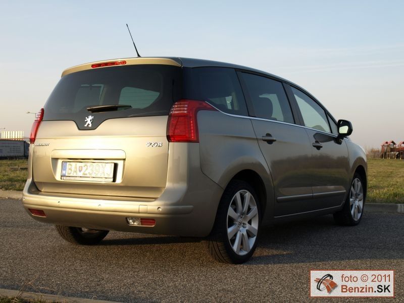 Pri pohľade zvonku je však rozdiel podstatnejší. Kým Peugeot 3008 má pôsobiť agresívnym, provokatívnym dojmom, náš Peugeot 5008 pôsobí uhladeným dojmom, podporujúcim rodinné využitie tohto rozmerného automobilu. Toto zameranie podporuje aj obrovské presklenie karosérie, spolu so strechou dosahuje plochu 3,39 m2. Samozrejme sú tu navyše dve sedadlá, ktoré sú uložené v podlahe v batožinovom priestore. Takže pri jazde s piatimi pasažiermi sa s mini odvezie aj batožina pre ktorú sa uvoľní 830 litrov priestoru.