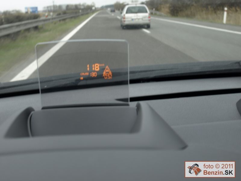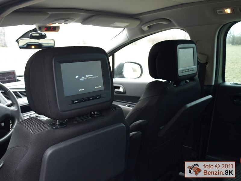 V interiéri dominuje výklopný priesvitný panel pred volantom, kde sa premieta údaj o rýchlosti vozidla, ale aj z aktívneho tempomatu s aktuálnou hodnotou o sekundovej vzdialenosti za vozidlom pred vami. Ak sa prekročí bezpečná miera, ozve sa varovný signál, tempomat však auto nezastaví, táto funkcia chýba. Family Pack zasa obsahuje aj multimediálny systém s možnosťou pripojiť DVD prehrávač, alebo hraciu konzolu s výstupom na Bluetooth slúchadlá a obrazovky umiestnené v opierkach hlavy predných sedadiel. Pri dĺžke karosérie 4 a pol metra sme ocenili predné aj zadné parkovacie senzory.