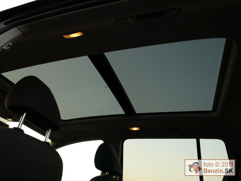 Pod rovnú podlahu kufra sa zmestila aj plnohodnotná rezerva. Využitie priestoru hodnotíme teda na jednotku. Vybavenie automobilu je tiež bohaté, čo spríjemňuje pobyt posádke počas jazdy. Interiér presvetľuje príplatková presklená strecha, ktorej predná časť má elektrické ovládanie. Praktické sú aj predné a zadné parkovacie senzory, ktoré majú nielen akustický, ale aj grafický výstup. Ďalším prvkom, ktorý sme mali k dispozícii bol parkovací asistent, ktorý dokáže automaticky sám zaparkovať. Pochvaľovali sme si aj optiku reflektorov, ktorá popri optimálnom osvetlení cesty mala aj natáčanie reflektorov do zákruty. Multifunkčný volant má nastavovanie v dvoch osiach a nechýba kvalitná audio sústava so vstupom USB a AUX, palubný počítač, automatické stierače a dvojzónová klimatizácia.