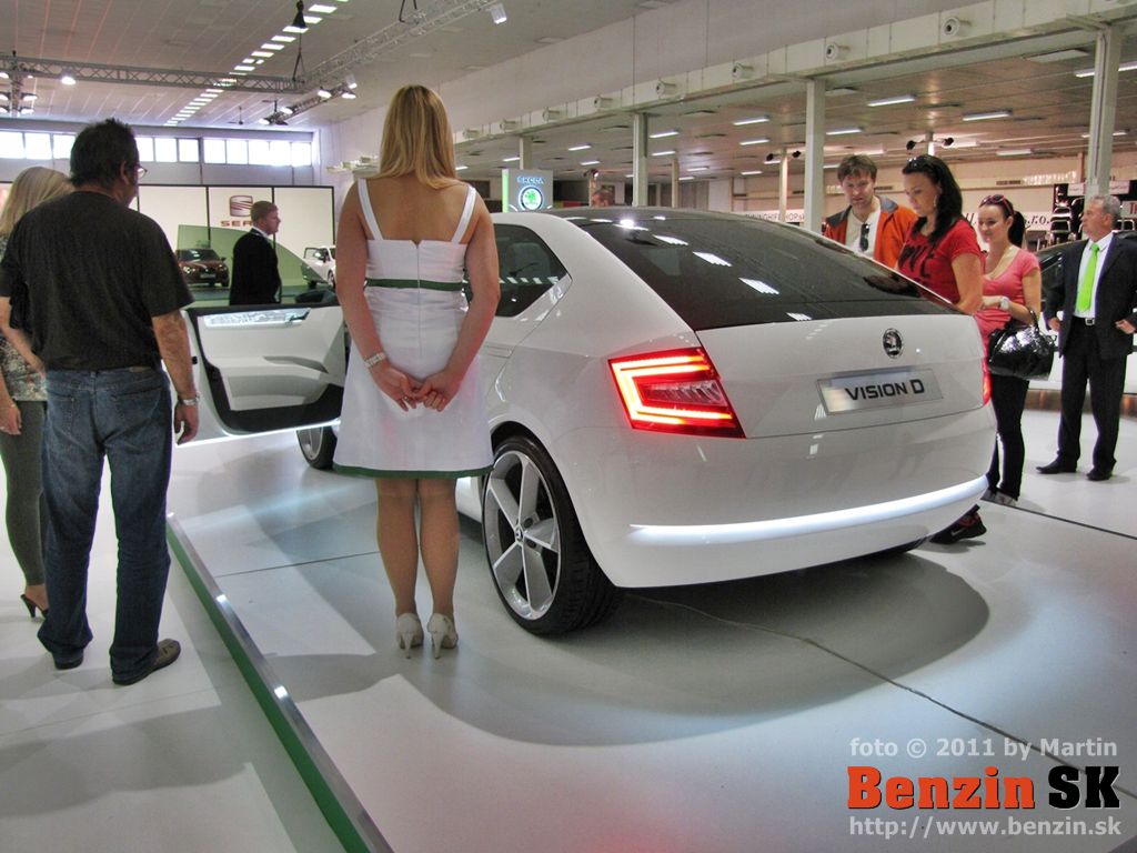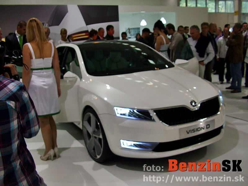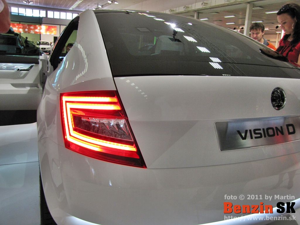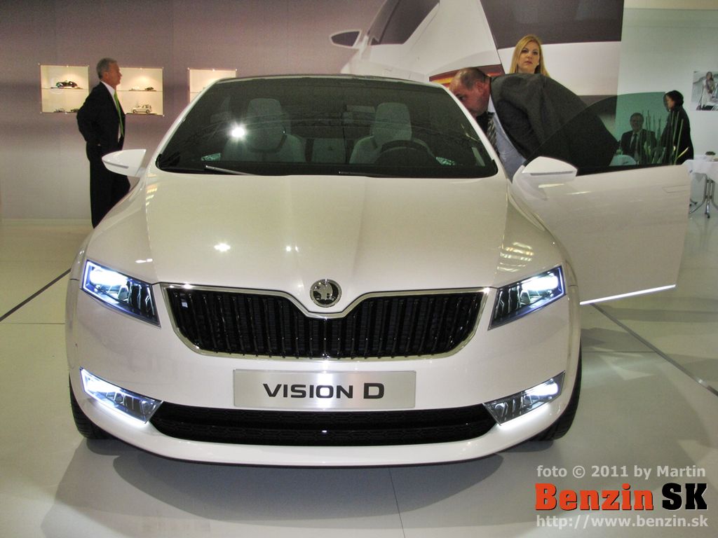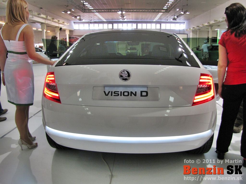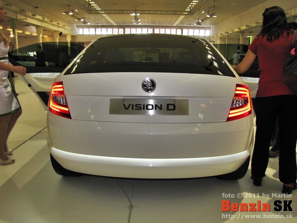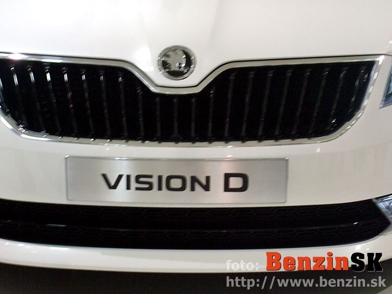 PO: Dobrý deň, dámy a páni. Je mi potešením byť doma po dlhej dobe a po dlhej dobe mať možnosť vám predstaviť niečo, čo predznamenáva našu prácu do budúcna a čo predznamenáva všetky nové modely, ktoré môžete od škodovky čakať. Je to koncept VisionD a toto auto sme predstavili na ženevskom autosalóne a je to akýmsi prvým predobrazom toho, čo by sme chceli, kam by sme chceli dizajn ŠKODY posunúť a dalo by sa povedať, že to, čo vidíte je akási biblia dizajnu ŠKODA AUTO. Nejedná sa v tomto prípade o konkrétny automobil, ktorý v tejto presnej podobe možno očakávať v sériovej výrobe, ale jedná sa práve o nejakú možno knižnicu dizajnových prvkov, z ktorých pri všetkých nasledujúcich modeloch budeme čerpať a ako ste už mali možnosť vidieť pri automobile MissionL, ktorý už je veľmi blízko k sériovému automobilu, určité prvky práve z VisionD na ňom boli použité. A takisto aj včera odhalený oficiálne model Citygo.