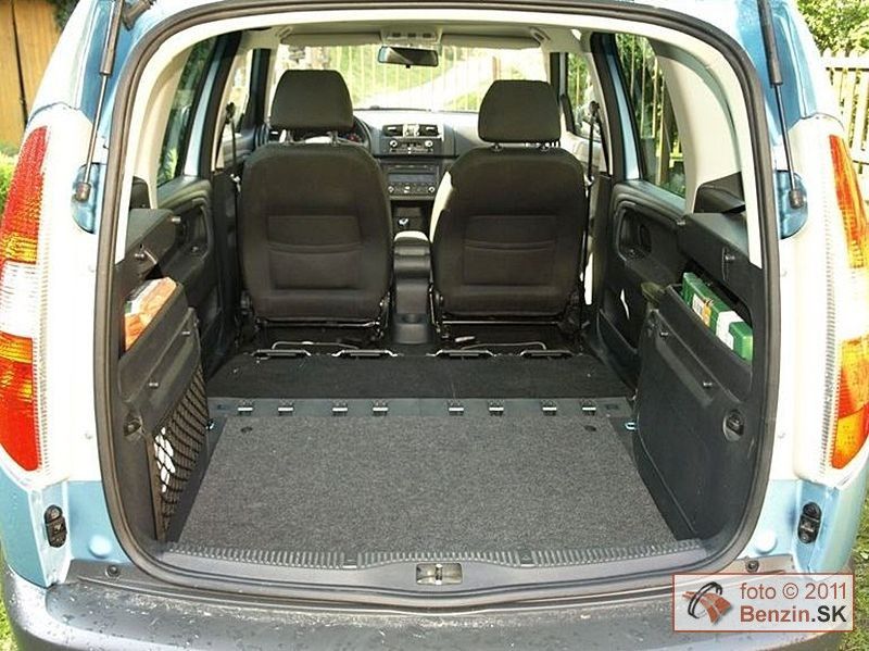 Je to najmä variabilita vnútorného usporiadania. Zadné sedadlá sú nielen sklopné jedným ťahom, ale aj ľahko vyberateľné z auta, čím sa z Roomstera stane dodávkový automobil s dobre využiteľným priestorom.