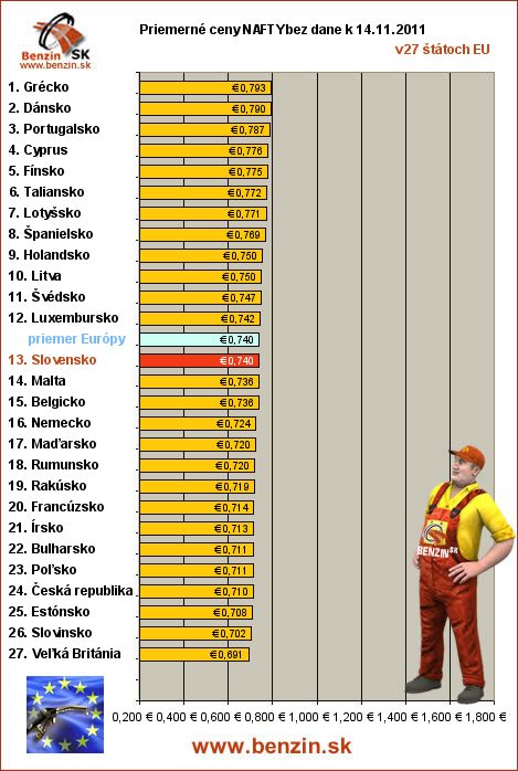 Nasledujúce údaje sú spracované podľa informácií EUROSTATU vydaných 16.11 k 14.11.2011 za obdobie v 45.týždni (od 07.11.2011 - 13.11.2011),