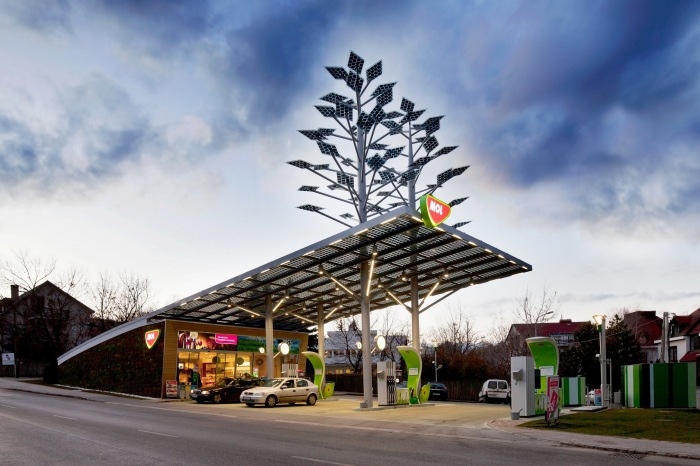 Kreatívne využitie alternatívnych zdrojov energie, pokles spotreby energie o viac ako 50%, efektívne zníženie emisií CO2 o 10 ton a použitie recyklovaných materiálov – to je stručné zhrnutie nového zeleného konceptu Skupiny MOL pre čerpacie stanice, ktorý je v súlade s princípmi trvalo udržateľného rozvoja. Prvá čerpacia stanica, postavená v tomto duchu bola tento mesiac slávnostne otvorená v Budapešti.
