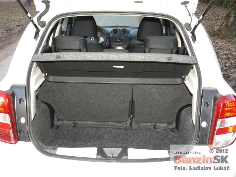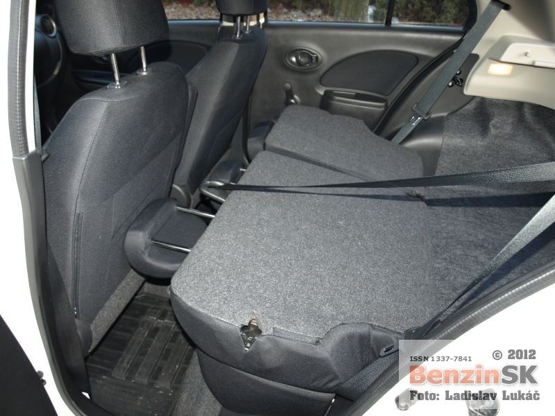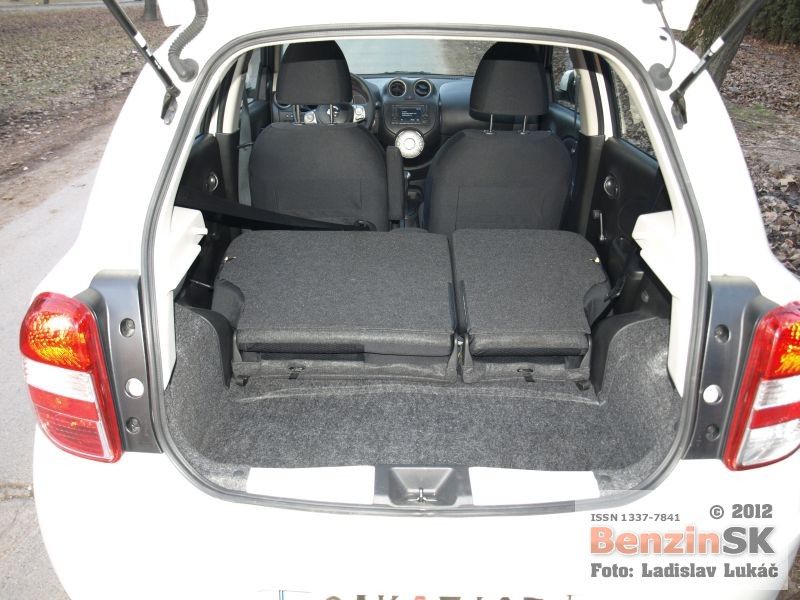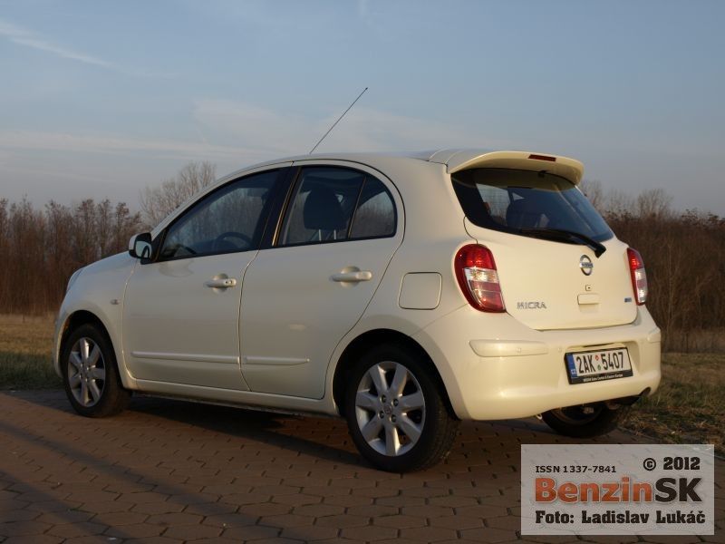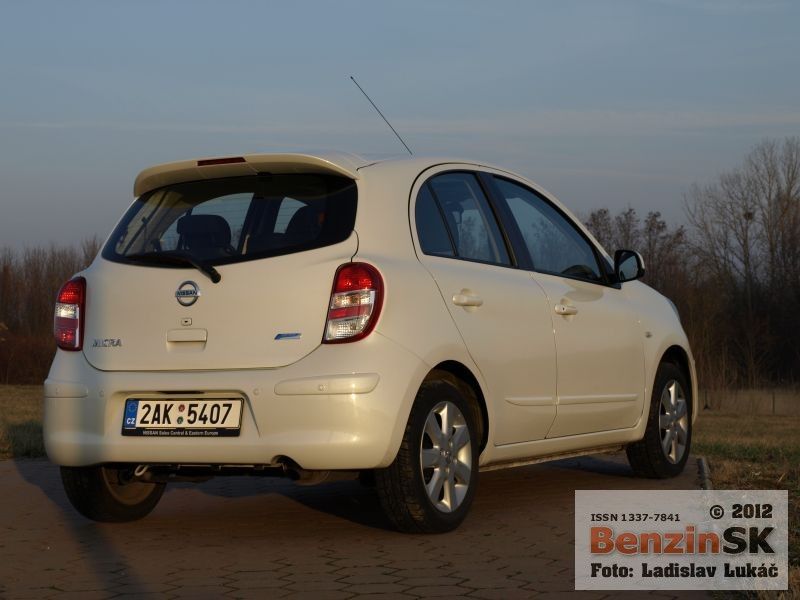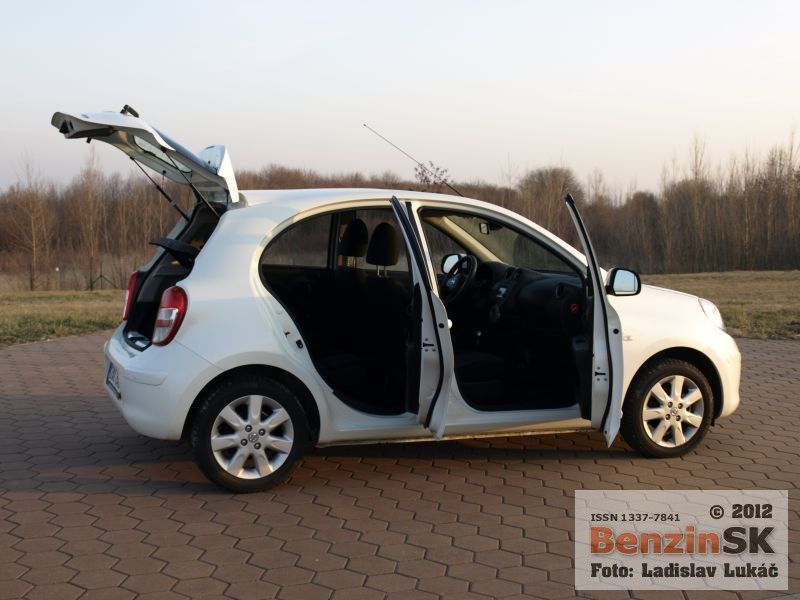 Môžeme len zopakovať, že nová Micra potom ako opustila retro-štýl predchádzajúcej generácie, sa vrátila do kolektívu malých mestských automobilov s novými tvarmi, ktoré sú však znova svojské. Maska nie je unifikovaná, takže ju nenájdete na žiadnom inom modeli Nissan. Svetlá sú nenápadne ľadvinovo pretiahnuté a celkovo predná časť pôsobí prívetivým dojmom. Aj pri poslednom teste sme ocenili, že automobil má pätoro dverí a teda aj ľahké nastupovanie na päticu sedadiel. Posed je vyšší, čo šetrí miesto pre dlhšie kolená. Prekvapivo vzhľadom na menšie vonkajšie rozmery sme vo vnútri našli dostatok životného priestoru. Zadné sedadlá sa dajú ľahko sklopiť, čím sa získa ďalší priestor v kufri pre batožinu. Ten sa zväčší z 265 na 605 litrov. Takto vytvorená plocha však nie je rovná, a pri nakladaní batožiny musíte prekovať aj pomerne vysoký prah.