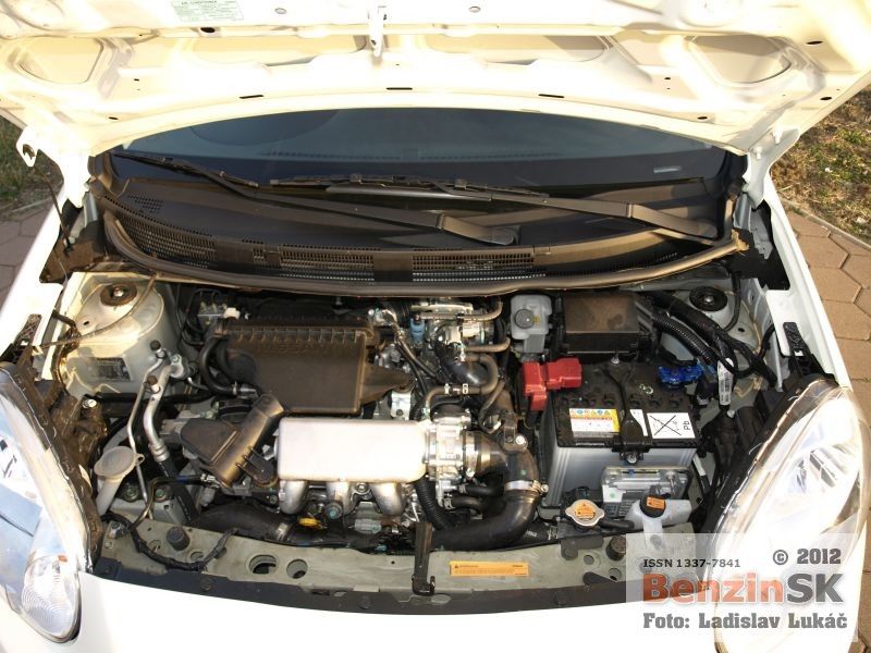 Podľa zvuku motora sa dalo len ťažko určiť, že motor má len tri valce. Mal kultivovaný chod a pracoval na trojvalec mimoriadne pravidelne aj na voľnobehu. Poslušne spolupracoval s bezstupňovou prevodovkou CVT, teda variátorom. Toto spojenie si žilo vlastným životom a nám ostalo len obsluhovať pedále bŕzd a plynu. Turbokompresor priniesol 18 konských síl navyše. To prinieslo zlepšenie akcelerácie. S týmto motorom zrýchľuje Micra z nula na 100 km/h za 11,9 sekundy, čo je o 2,6 sekundy lepší čas ako bez kompresora. Zvýšenie výkonu sa prejavilo aj pri jazde po diaľnici, kde do kopca prevodovka príliš často nepreraďovala. Pri 130 km/h pracoval motor podobne ako pri neprepĺňanej verzii na úrovni 2500 ot/min. Veľmi nás zaujímala aj spotreba, pretože turbo malo priniesť aj zníženie spotreby. V meste o skoro liter a počas kombinovanej prevádzky o 4 decilitre benzín na 100 kilometrov. Treba povedať, že naša Micra bola 100 kilogramov ťažšia, ako tá predchádzajúca, čo malo určite vplyv na spotrebu, podobne ako aj jazda po snehu. Pri obidvoch automobiloch sme sa však snažili dodržiavať rovnaký jazdný režim. Na konci testu sme mohli skonštatovať, že turbokompresor priniesol nielen nárast dynamiky, ale aj pokles spotreby na 6,4 litra. Teda oproti atmosférickej verzii o jeden deciliter, čo je o 1,4 litra nad tabuľkovými hodnotami. Musíme však konštatovať, že na automatickú prevodovku je to pri výkone skoro 100 koní výborný výsledok. Naše skúsenosti totiž hovoria, že malé autá s robotizovanou prevodovkou nemajú problém jazdiť so spotrebou aj o dva litre vyššou. Takže táto kombinácia prepĺňaného trojvalca s prevodovkou CVT sa nám javí ako úspešná a môže dobre osloviť najmä motoristky, ktoré určite tento automobil priťahuje aj svojimi tvarmi.