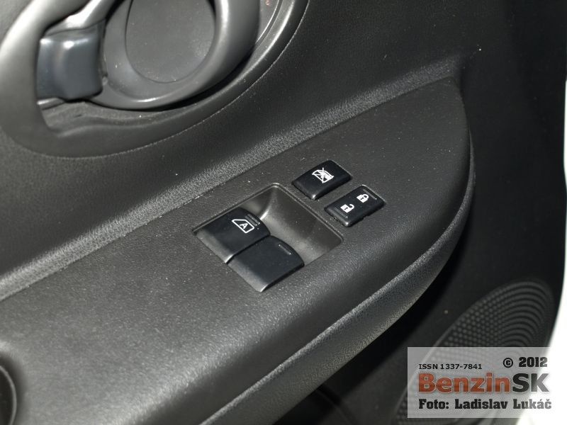 Multifunkčný volant mal výškové nastavovanie. Kruhové prístroje sú dobre čitateľné a v strede pomerne jednoduchého prístrojového panelu dominoval výrazný kruhový ovládač klimatizácie, nad ktorým sa nachádzaj združený dotykový displej, ktorý ponúkal aj možnosti navigácie, ale aj autorádia a napojenia audio iPod, USB a Aux. Ak k tomu pridáme elektrické ovládanie predných okien a spätných zrkadiel, presklenú strechu, systém Štart-Stop, ktorý automaticky vypínal motor povedzme pri zastavení na križovatke, štartovanie tlačidlom, či parkovacie senzory a automatickú klimatizáciu a tempomat, boli sme v takomto malom aute spokojní ako by sme boli v aute najmenej o kategóriu väčšom. Ocenili sme aj to, že sme mohli ovládať automobil s kľúčom vo vrecku.
