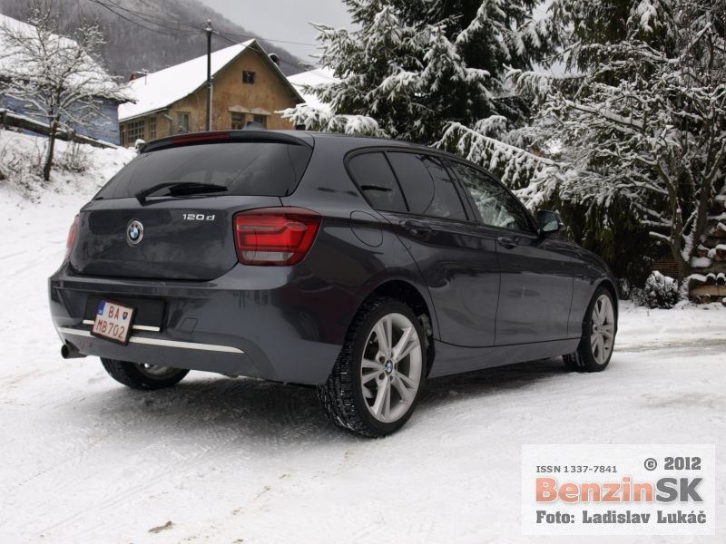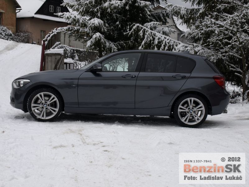 Určite nie je náhoda, že bočná línia BMW 12 d pripomína športové kupé Z3 s dlhšou prednou časťou a kabínou posunutou dozadu. Táto dynamická línia má a musí jednoducho zaujať. Typická maska s dvomi typickými ľadvinkovými nasávacími otvormi v maske a možno trochu jednoduchšie reflektory a koncové svetlá, to je krátka charakteristika dizajnu. Poďme však k jazdným vlastnostiam. Motor disponuje výkonom 184 koní, ktorý je dávkovaný cez osemstupňovú automatickú prevodovku na zadnú nápravu. Prevodovka Steptronic pracuje skutočne ukážkovo a poslúcha bez reptania na slovo. K dispozícii máte na výber hneď niekoľko režimov. Eco Pro, ktorá dbá na čo možno najúspornejší režim jazdy, Comfort, Sport, Sport+ , kde športové režimy dovoľujú prácu s využitím vyššej dynamiky a otáčok motora. Pri diaľničnej 130 km/h pracuje motor na 8 prevodovom stupni na úrovni 2000 ot/min. Pričom jazda je mimoriadne tichá. O úrovni motorov BMW netreba pochybovať, patria k technologicky najvyspelejším, o čom svedčia pravidelne získavané ceny. V našom prípade výkonný prepĺňaný štvorvalec mal jazdiť aj veľmi úsporne, na úrovni 4,5 litra nafty na 100 kilometrov. Priznám sa, že voľbu Eco Pro len v meste, inak sme sa skôr oddávali potešeniu z výkonu motora. Počas testu sme dosiahli spotrebu 6,3 litra. Jazda na snehu s prebytkom výkonu na zadnej náprave vyžaduje vyšší stupeň citlivosti, pretože ani elektronika, ktorá dohliada na trakciu na snehu nie je všeliek. Auto má najmä pri dynamickejšej jazde na šmykľavom povrchu k pretáčavosti. S BMW 120 d sme sa po skončení testu len neradi lúčili. Je to automobil, ktorý padne dobre do ruky, má kvalitne prepracovaný interiér a aj v prípade vyhotovenia Urban Line aj nepopierateľné športové srdce a výkon.
