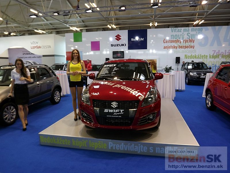 Na bratislavský autosalón priviezla automobilka Suzuki svoju novinku, Suzuki Swift Sport. Toto trojdverové autíčka poskytuje svojimi jazdnými vlastnosťami športový zážitok, ktorý podporuje aj benzínový motor 1,6 s výkonom 100 kW/136 koní. Odvážna masky chladiča, korunuje dynamické vlastnosti motora až po harmonicky integrovaný strešný spojler, ktorý presúva dôraz vozidla opticky dole. Všetko na novom Swifte Sport je cielene navrhnuté k vyvolaniu neprehliadnuteľného dojmu a inšpiruje k dosiahnutiu maxima z každej jazdy.