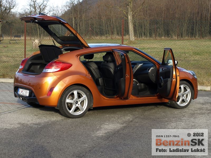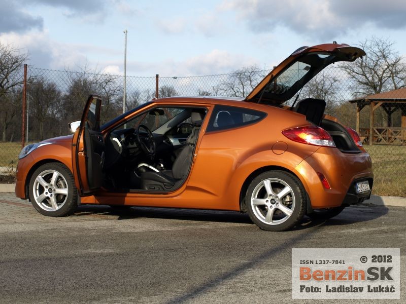 Hyundai Veloster predstavili po prvýkrát pred rokom na autosalóne v Detroite. Nekonvenčné riešenie štvordverovej karosérie dáva automobilu neopakovateľný charakter. Zo strany šoféra je to karoséria typu kupé, s veľkými dverami, kde sa na zadné sedadlo dostanete pomerne nešikovne až po sklopení predného operadla. Zo strany spolujazdca je to klasická karoséria hatch back s dvojicou dverí na pohodlné nastupovanie aj na zadné sedadlá. Aj keď nastupovanie cez šoféra sme si vyskúšali, druhýkrát sa nám to už nechcelo opakovať, radšej sme nastupovali cez zadné dvere za spolujazdcom a posunuli sme sa na vedľajšie sedadlo. Zdalo sa nám to praktickejšie.
