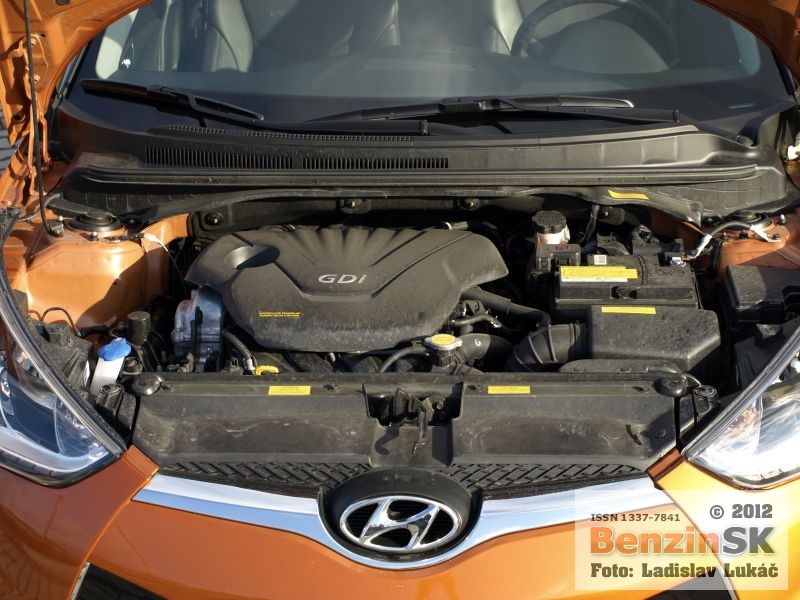 Takto je označená pohonná jednotka, ktorá poskytuje automobilu príjemný výkon 103 kW, teda 140 koní. Cez šesťstupňovú prevodovku je poháňaná predná náprava. Motor je pružný a diaľničnú rýchlosť dosahuje na šiestom prevodovom stupni na úrovni 3 300 ot/ min, čo je podstatne pod maximálnym krútiacim momentom, ktorý dosahuje až pri 4 850 ot/min. Takže vás tento automobil nenápadne nabáda, aby ste túto úroveň otáčok aspoň občas dosiahli, a vyskúšali športovejšie ladený režim, ktorý Velosteru svedčí. Ak tak budete robiť častejšie, ani vám sa nepodarí dostať priemernú spotrebu na deklarovaných 5,5 litra benzínu na 100 km. Skôr sa budete pohybovať niekde okolo spotreby udávanej pre mesto, 8,1 litra. My sme sa dostali ešte vyššie, na konci testu sme namerali priemer 8,5 litra. Hyundai Veloster je určite zaujímavý automobil, s vyváženými jazdnými vlastnosťami a zaujímavými dvomi tvárami. Oproti ortodoxnému kupé je toto riešenie praktickejšie. Bude zaujímavé sledovať, ako však osloví motoristov. Naša motoristická obec sa mi zdá na takýto výstrelok trochu konzervatívna, uvidíme....