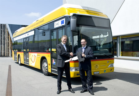 K autobusom značky Mercedes-Benz švajčiarskej spoločnosti PostAuto Schweiz (prepraví 120 miliónov pasažierov ročne) pribudlo koncom uplynulého roka aj päť nových autobusov Citaro FuelCELL-Hybrid na palivové články.
