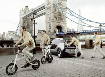 BMW i Pedelec Concept: dokonalý doplnok mestskej mobility. BMW i prináša inovatívne dvojkolesové vozidlo, ktoré je ideálnym doplnkom pre BMW i3 Concept v zmysle jeho obohatenia o ďalšiu praktickú rovinu mestskej mobility. Nový BMW i Pedelec (Pedal Electric Cycle) Concept je kompaktný bicykel s elektrickým motorom ako doplnkom k vlastným silám jazdca, ktorý mu pomôže prekonávať náročné veľkomestské trasy rýchlejšie a s menšou námahou. BMW i Pedelec Concept sa dá veľmi jednoducho a rýchlo zložiť. V batožinovom priestore BMW i3 Concept je dosť miesta až pre dva kusy tohto elektrického bicykla, vrátane možnosti dobíjať tam ich batérie.