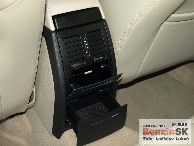 Dokonca sme mali možnosť skúšať tieto dva spomínané modely skoro po sebe s rovnako pôsobivou krémovou farbou koženého interiéru s využitím drevených prvkov. Elektrická výbava okien a spätných zrkadiel bola samozrejmosťou, ako aj parkovacie senzory vpredu a vzadu s grafickým vyjadrením na centrálnom displeji. Nechýbal tempomat, či dvojzónová klimatizácia, alebo xenónové reflektory s funkciou Corner, ktoré sa snažia pozerať „ za roh“. To všetko zodpovedá štandardu vhodného pre biznis triedu. Ako vždy, aj teraz mi vyrazil dych pohľad do rozmerného batožinového priestoru. Ponúka aj šikovnú medzi podlahu, kde sa dá odložiť povedzme podnikateľský kufrík, aby nedráždil pohľad dlhoprstým pri občasnom otvorení piatych dverí povedzme pred nákupným centrom. Jediným malým obmedzením je nakladacia hrana, ktorú treba akceptovať.