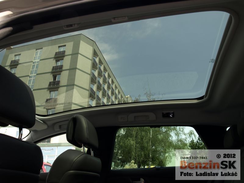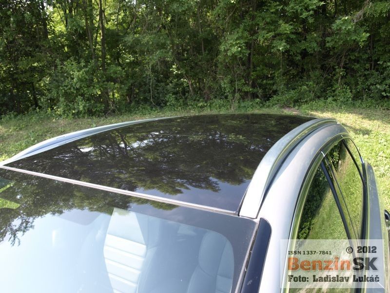 Priestor kufra totiž ľahko môžete oddeliť vyťahovacou sieťou spoza zadných operadiel. Jediným obmedzením je možno prístup do kufra cez trochu vyšší prah. S osvetlením interiéru sa konštruktéri tiež pohrali, pri nastupovaní si vidíte na nohy nielen vonku, ale aj vo vnútri. Počas dňa si zasa môžete užívať svetlo cez panoramatickú, presklenú strechu s elektricky ovládanou clonou. Auto je plné elektronických systémov. Napríklad radi sme používali bez kľúčový prístup, kde otvárania a zatváranie vozidla sa deje cez dotyk kľučky. Štartuje sa tlačidlom, ktoré je umiestnené na ľavej strane skoro až pri dverách, hneď vedľa tiahla automatickej ručnej brzdy. Navigácia sa ovláda zasa cez karusel umiestnený pri radiacej páke, tam kde by ste čakali ručnú brzdu, ale na to si rýchlo zvyknete. Aj na to, že pred volantom máte nielen klasický kruhový tachometer. No nad prístrojový panel sa po naštartovaní vysunie zrkadielko, z ktorého môžete odčítať rýchlosť v digitálnej podobe, ako aj nastavenú hodnotu tempomatu. Multifunkčný volant má tiež dostatok tlačidiel na to, aby ste sa ich museli trošku naučiť. Kvalitná audio sústava hravo zvládne aj pripojenie iPod, či USB kľúča. Ocenili sme pri dĺžke karosérie aj parkovacie senzory. Miesta pre takéto veľké auto už v stiesnenom parkovaní v meste nebýva nazvyš.