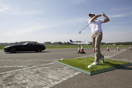 Do Guinnessovej knihy svetových rekordov pribudol ďalší overený záznam: zachytenie najďalej odpálenej golfovej loptičky idúcim autom.