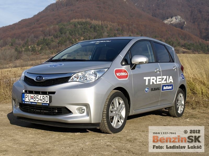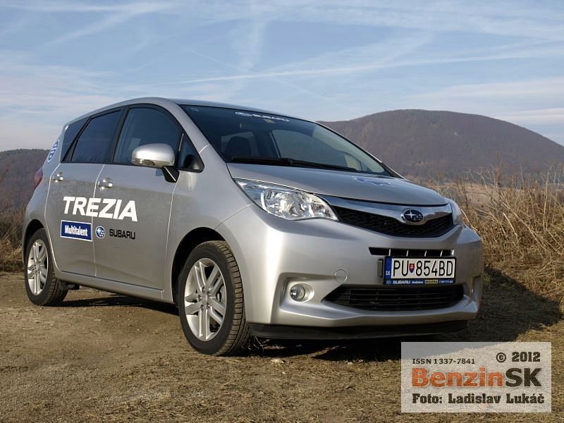 Pohľad na karosériu a pod kapotu nás presvedčil o tom, že tento automobil má spoločné črty s Toyotou Verso S, ktoré predstavili v roku 2009. Skutočne, základ Subaru Trezia, ktorá je minuloročnou novinkou na našom trhu tvorí práve spomínaná Toyota. Názov Toyota nájdete nielen na všetkých oknách, ale aj pod kapotou, kde sa nachádza malolitrážny atmosférický motor už spomínanej značky. Subaru Trezia odlišuje od brata najmä tvar prednej masky so šiestimi hviezdičkami v znaku a predné reflektory. Inak spolupráca pri výrobe automobilov nie je pre značku Subaru ničím novým. Pamätáme si ešte výrobu Subaru Justy v maďarskej fabrike Suzuki v Ostrihome. V každom prípade Subaru modelom Trezia urobilo prielom na trh s malými mestskými MPV vozidlami, ktoré doteraz nemalo vo svojom portfóliu.