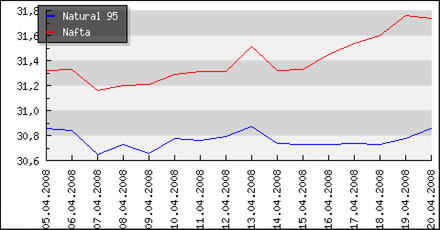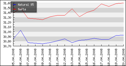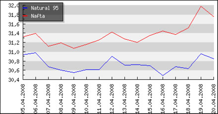 | Vývoj cien pohonných hmôt v Českej republike k 11.2.2008 |