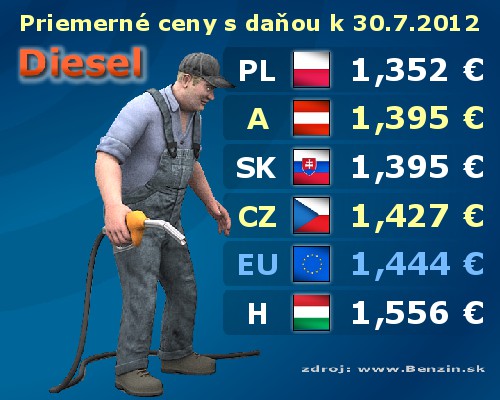 Celoúnijný priemer cien motorovej nafty stúpol o 6,02% (u nás zatial len o 3,79%).