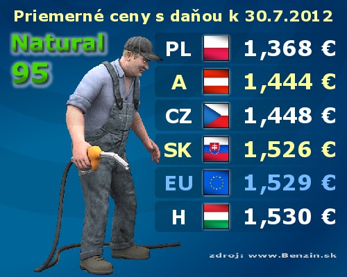 Ceny phm na slovensku sa zvýšili v priemere o 3.79% za naftu, 4.38% za natural95, 6.29% za natural98 a 5.94% za LPG. (poznámka: Pokiaľ nestúpne spotrebná daň a DPH na PHM, a ceny stúpli o rovnaké percento ako vstupná surovina na výrobu, museli teda asi o rovnaké percento stúpnuť aj podiely na zisku z výroby a distribúcie)