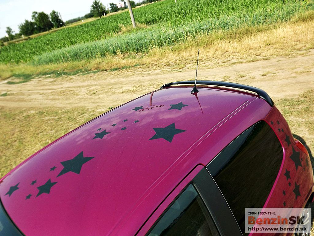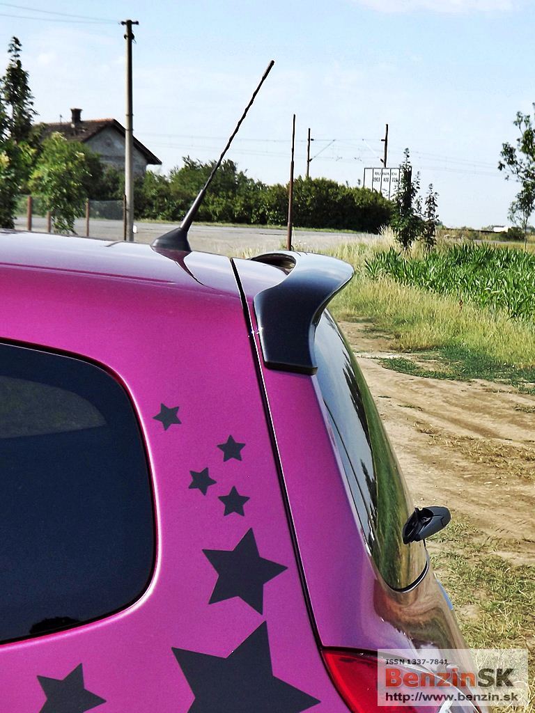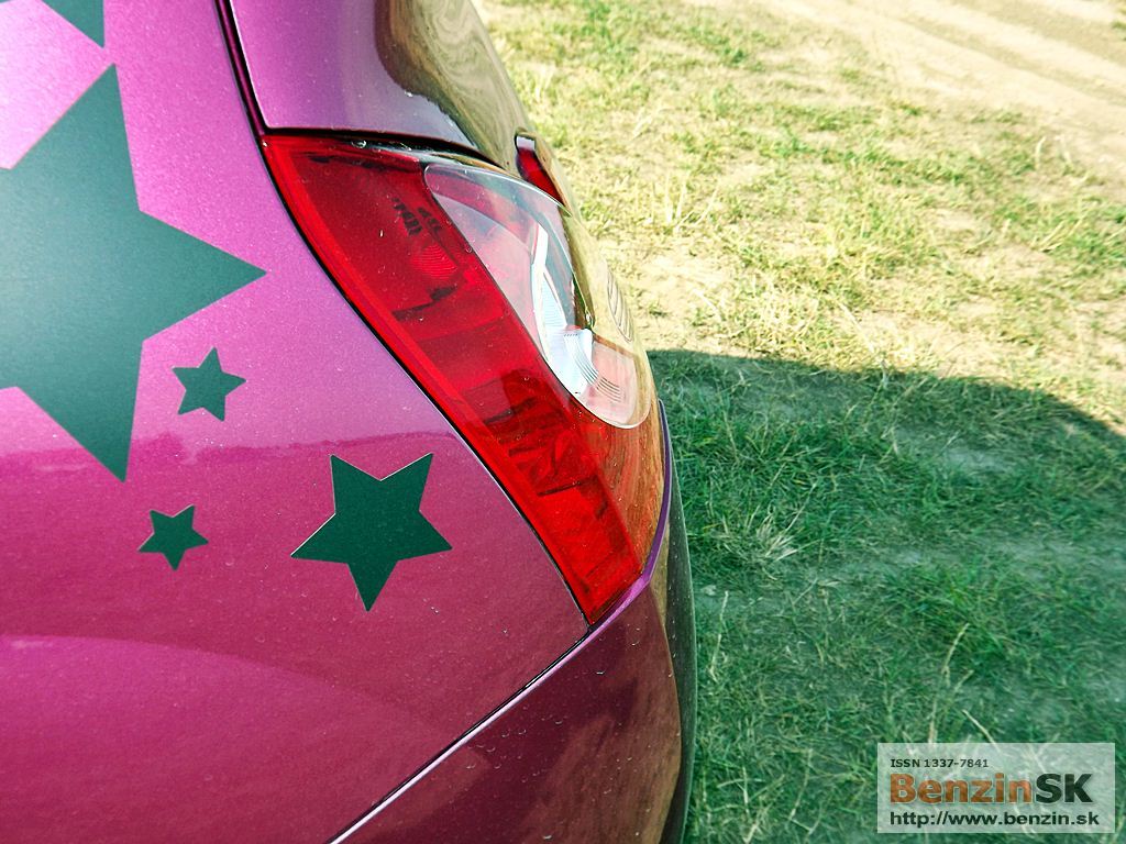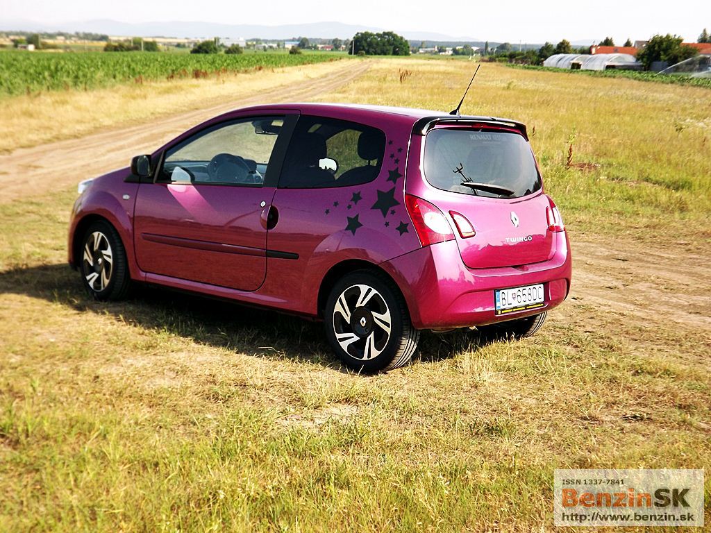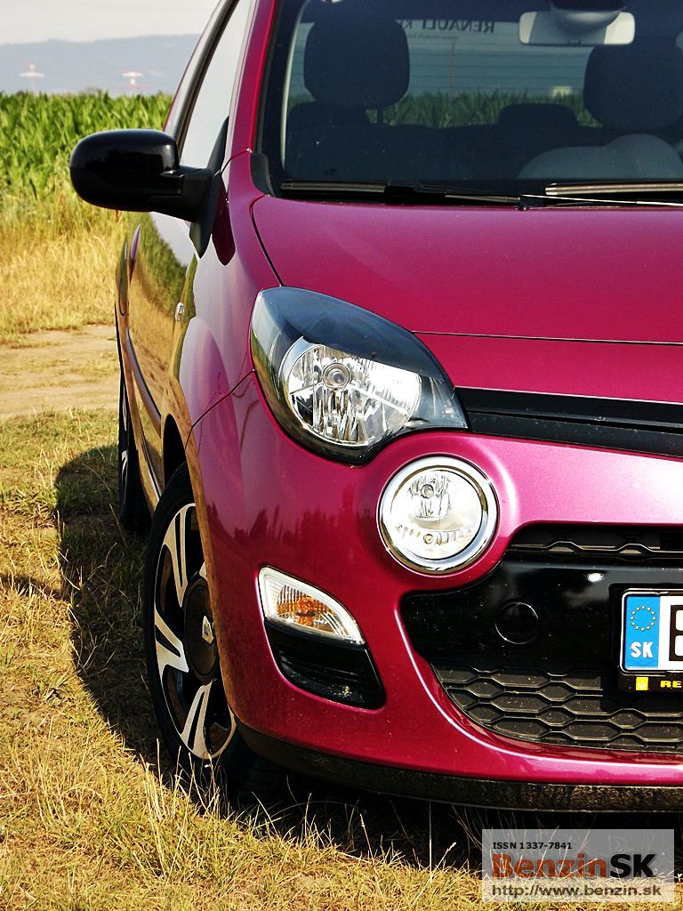 ![]() Svoje Twingo si môžete vytvoriť jedinečné, podľa svojich predstáv – stačí si vybrať z ponuky personalizačných doplnkov. I keď to nie je vždy len za symbolickú sumu, ten efekt stojí za to. My sme jazdili vo „hviezdnom“ Twingu, farba fialová fuchsia a polep strechy stál 230 eur... Predná časť nového Twinga bola inšpirovaná špeciálne novou dizajnovou identitou Renaultu. Logo Renaultu, vyskytujúce sa na kapote, je väčšie a oveľa vzpriamenejšie. Dynamický a hravý charakter Twingo je podčiarknutý hmlovými svetlometmi a oblými obrysovými svetlami, ktoré sú teraz umiestnené vedľa mriežky chladiča. Svetlomety s „očnými viečkami“ sa taktiež podieľajú na osobitom vzhľade nového Twinga. V zadnej časti sú popri bežných svietidlách umiestnené nové cúvacie svetlá, nachádzajúce sa na veku batožinového priestoru. ![]()