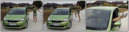 S radosťou sme sa pustili do testovania. Za vzor sme mali TV reklamu, ktorá ukazovala, ako sa do takéhoto auta správne nastupuje. No nech sme to skúšali akýmikoľvek spôsobmi, na borcov z reklamy sme nemali. A tak sme nastúpili celkom obyčajne – otvorenými dverami... ![]()