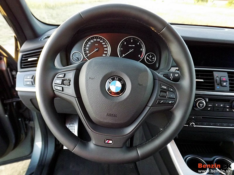 Pri šoférovaní sú na výber tri režimy systému Dynamic Drive Control: Eco pro, Sport a Comfort. Samozrejme, že sme vyskúšali všetky, ale najčastejšie sme striedali Eco a Comfort. Hladké radenie osemstupňovej automatickej prevodovky napomáhalo výkonu. Testovaním sme zistili, že X3 pekne drží stopu v zákrutách, riadenie rýchlo reaguje.