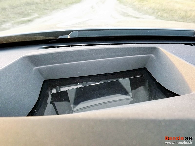 Po naštartovaní sa vo mne umocnil dojem, že som sa posunula v čase do budúcnosti. Technológie, o ktorých sa len rozprávalo, sú tu a sú reálne. Úžasným plusom je zobrazovanie informácií na čelnom skle pred vodičom. Sústredíte sa len na cestu, nepotrebujete klopiť oči na tachometer, pretože priamo pred vašim zrakom na prednom skle sa zobrazuje táto informácia. A nielen rýchlosť, ale toto “inteligentné auto”, rozpoznáva aktuálnu situáciu na ceste, upozorní na zmenu a zobrazí napríklad prenosnú značku obmedzujúcu rýchlosť na 30 km/hod. zobrazením na čelnom skle.
