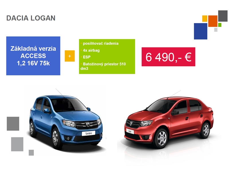 Nový Logan ponúka teraz viac a lepšiu kvalitu, za dobrú cenu. Dacia Logan sa na Slovensku dostáva do predaja vo februári 2013.