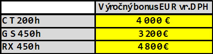 Spoločnosť Lexus Czech&Slovak Republic, divízia prémiovej značky Lexus spoločnosti Toyota Motor Czech s.r.o., predstavila pri príležitosti prekročenia hranice 500 000 ks celosvetovo predaných vozidiel s plne hybridným pohonom limitovanú ponuku vybraných modelov s technológiou Lexus Hybrid Drive s výročným bonusom vo výške 3 200€ – 4 800€.