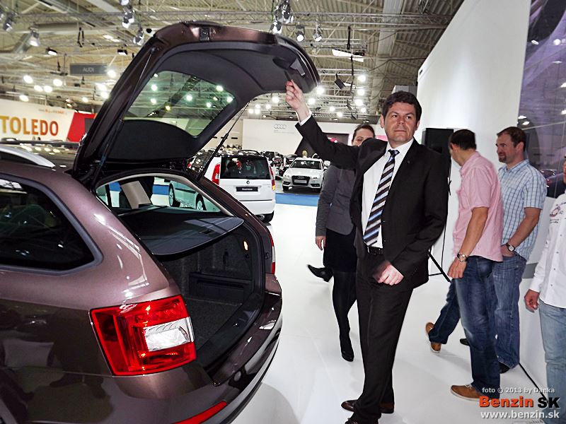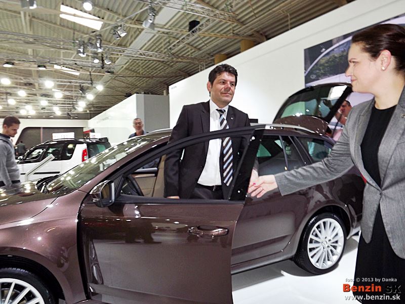 „Teší ma, že sme mohli slovenskej verejnosti odhaliť novú Octaviu Combi naživo práve na bratislavskom autosalóne. Návštevníci si budú môcť počas nasledujúcich dní pozrieť aj ďalších 11 modelov značky ŠKODA a v prípade záujmu o kúpu, využiť aj autosalónový bonus vo výške 333 € s DPH na všetky skladové vozidlá. Dnešným dňom zároveň začíname prijímať objednávky na novú Octaviu Combi aj vo verzii s pohonom všetkých štyroch kolies. Model Octavia Combi 4x4 si tak môžu fanúšikovia značky ŠKODA objednať už od 21 280 €,“ povedal Ing. Karel Sklenář konateľ spoločnosti ŠKODA AUTO Slovensko.