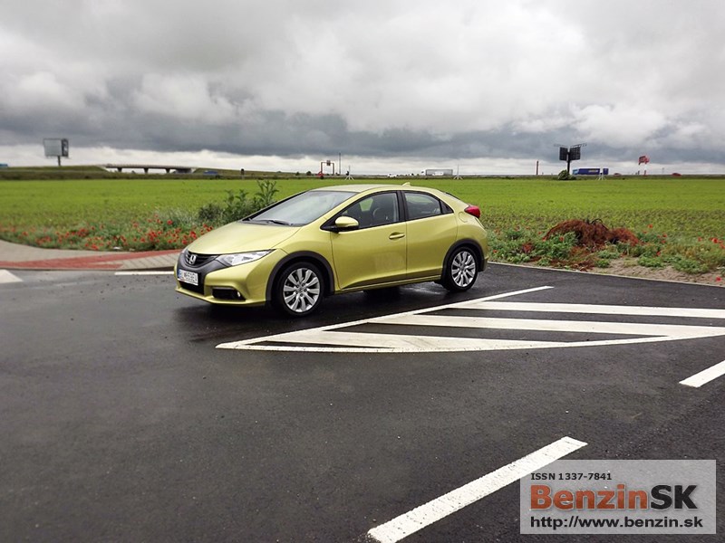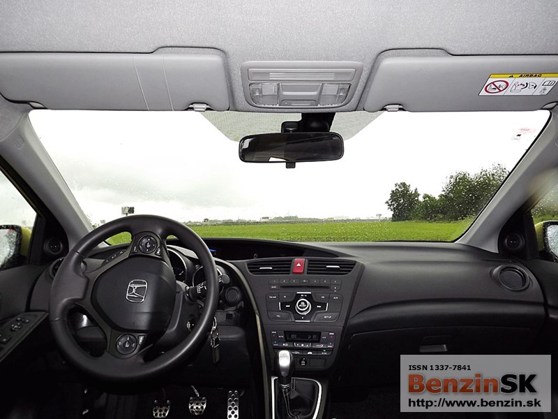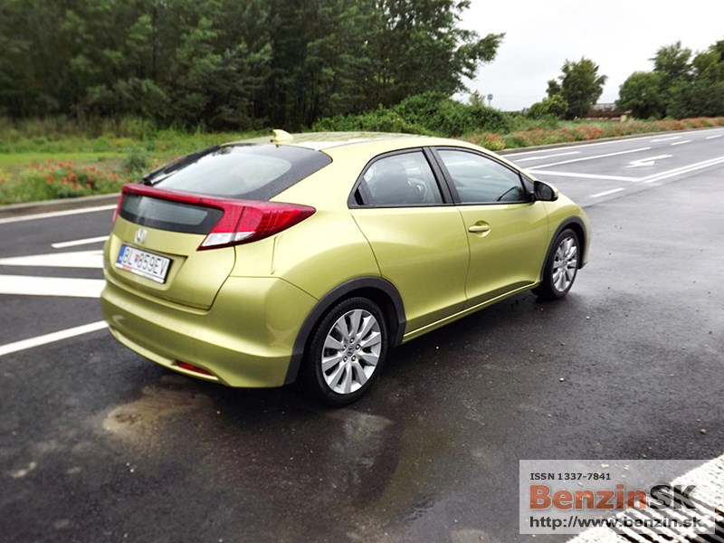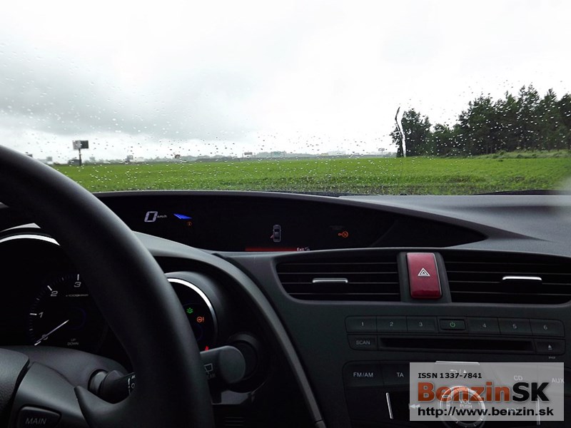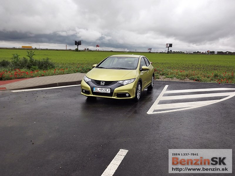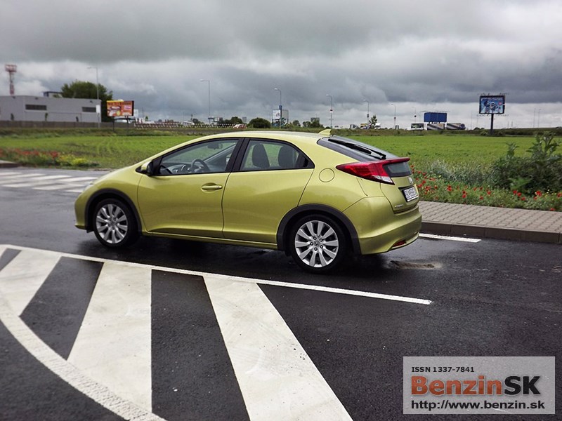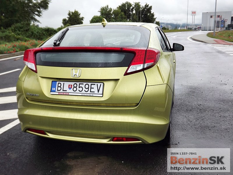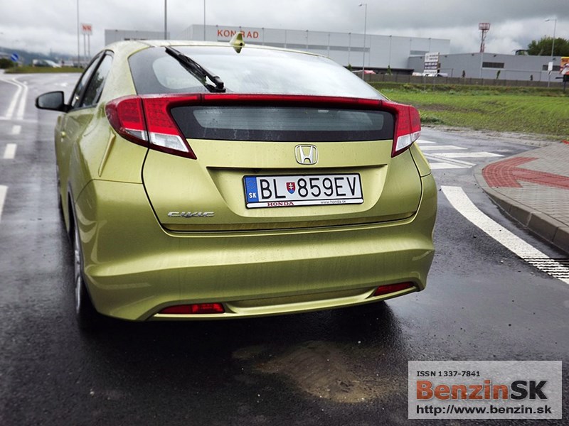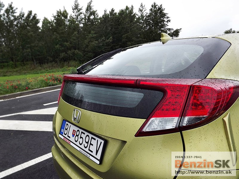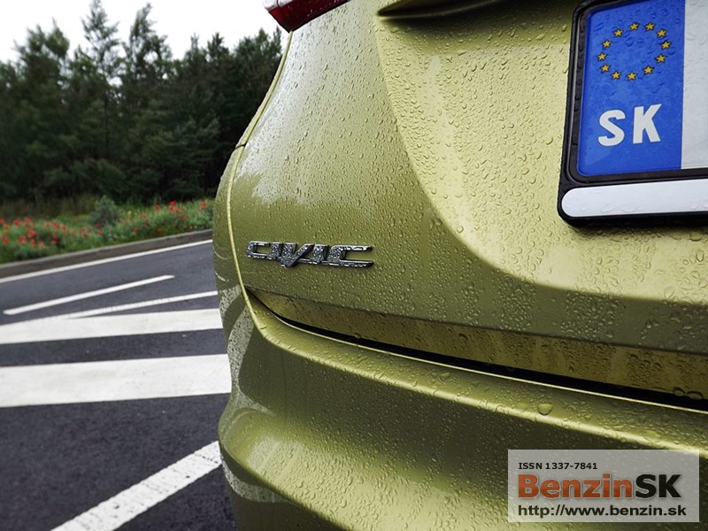 Zadný stierač je nezvyčajne zaparkovaný v polohe nahor, a nie rovnobežne s brzdovým svetlom. Civic má vo výbave parkovaciu kameru, ktorá bola výborným parkovacím pomocníkom. No pri cúvaní v daždi je kamera zanesená kvapkami a poskytuje zlý výhľad. Vozidlo je pomerne nízke, ale necítiť to pri nastupovaní a vystupovaní.
